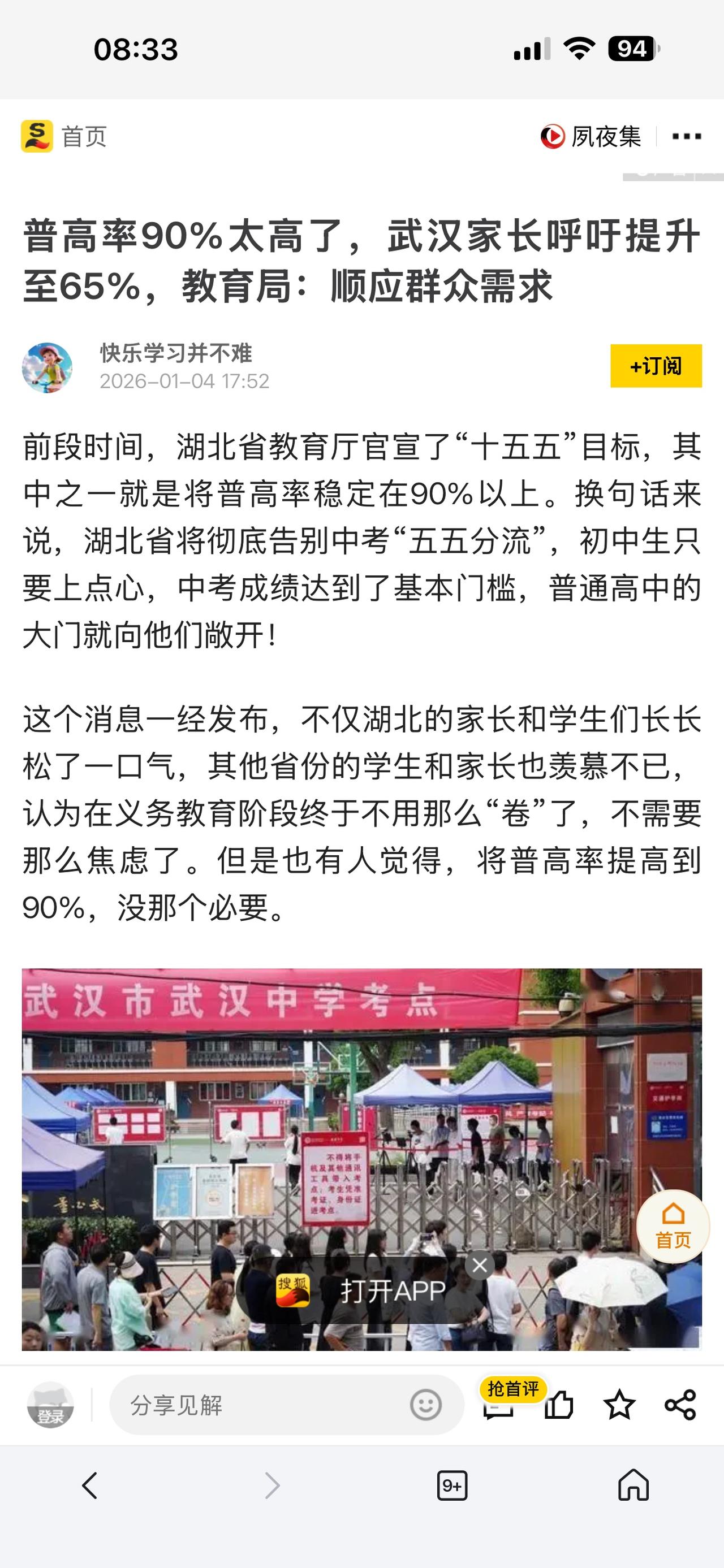 未来中国的普高录取率会达到90%以上,人人读大学将成为现实! 近日,武汉教育局官宣将把普高录取率提高到90%。对此,有家长支持、有家长反对。那么,这件事情背后的逻辑是什么? 假设孩子六岁读小学,16岁就该读高中。2026年读高中的孩子基本上就是2010年左右出生的。那么,2010年中国新生儿数量是多少?1592万! 2025年新生儿是多少?871万!只有2010年的一半多一点。这是什么概念?会产生什么蝴蝶效应? 到2029年,幼儿园的适龄儿童只有871万、2032年小学适龄儿童也只有871万,以此类推……以前国家对于各级学校的配置,肯定是按照1600万左右的新生儿数量。 今后,孩子的数量跟1600万的配置比起来,基本上是打五折。所以说,未来大量的幼儿园、小学、中学、大学都会关门。要知道,2025年普通高校毕业生是1222万。 看完这几组数据,就知道武汉教育局出台90%高中录取率的原因了。并且,不久的将来,各地也会出台类似政策。毕竟,就算所有孩子都读高中,还有30-40%高中要关闭,还有30-40%高中老师需要下岗分流! 这对于家长们是好事还是坏事?这个真不好说,差生即使侥幸进了高中,三年发奋图强变身学霸,有不有这种可能性?有,但是概率微乎其微! 最后,提醒一下未来高中生的家长们,如果孩子成绩差,真不如读职高,学门手艺早就业!