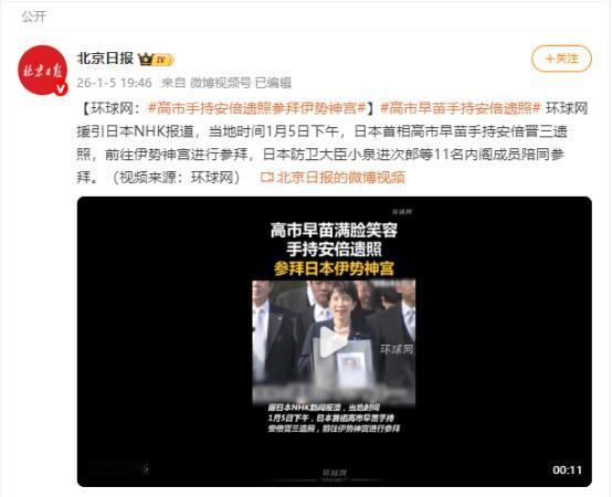 日本首相高市早苗1月5日发文说:我与内阁成员一同参拜了伊势神宫。 这根本不是什么新年伊始的新春祈福,而是一场明目张胆的右翼政治表态。每一个细节都在跟外界说,她要把安倍晋三的右翼路线一条道走到黑。 1月5日,高市早苗带着包括防卫大臣小泉进次郎在内的11名内阁成员,一起去参拜了伊势神宫。 更扎眼的是,她全程都拿着安倍晋三的遗照,还特意带上了一张2016年安倍和G7峰会领导人一起参访伊势神宫的合影。她直言“想带安倍前首相再来看一看”,这话听着好像挺温情,实际上把自己的政治野心摆得明明白白。 要搞懂这事儿里的猫腻,得先明白伊势神宫不是普通的神社,更不是随便去祈福的地方。这地方是日本天皇家族的专属神社,供奉的是传说中天皇的祖先天照大神,本质上就是日本皇权和国家象征的精神载体。 连神社的安保都是自卫队的自卫官负责,从根上就和政治绑在一起。早就有外国学者点破,日本政客参拜伊势神宫就是“狗哨政治”,表面上挑不出大错,不会像参拜靖国神社那样直接引发外交风波,实际上是在悄悄讨好国内的右翼基本盘,传递保守主义信号。 当年安倍晋三就多次带外国政要到这儿参拜,就是想借着这个看似“中立”的场所,强化日本的保守主义叙事。高市早苗这次又用了同样的套路,还带上安倍遗照,说白了就是想接下安倍的“衣钵”,告诉那些右翼支持者,自己才是安倍政治遗产的正统继承人。 再看看高市早苗这个人的底色,就更清楚她这波操作不是偶然。她是日本右翼保守势力的核心人物,年轻的时候就满脑子右翼思想。三十多年前,她就在国会公然反对日本反思二战罪行,还质问时任首相为什么要为侵略战争道歉。 她还是日本最大右翼团体“日本会议”的核心成员,多次参拜靖国神社,否认南京大屠杀、“慰安妇”这些历史事实。她一门心思要修改和平宪法,把自卫队改成“国防军”,让日本拥有交战权。 而安倍晋三就是她的政治“导师”,她能一步步走到首相的位置,离不开安倍的提携。两人的政治立场高度重合,甚至她比安倍还要极端。 这次她带着内阁成员集体参拜,还特意带上安倍遗照,就是在向党内和国内的右翼势力亮明态度。她的内阁会完全延续安倍的路线,甚至会在右翼的道路上走得更远。 更值得警惕的是,高市早苗这波政治表态的背后,是整个日本政坛加速右倾化的大背景。自从她10月上台以后,日本的右倾趋势就越来越明显。网络上针对外国人的仇恨言论越来越多,街头的右翼游行也变得频繁起来。 就连学者和主持人,只要敢质疑她的政策、指出她的错误,就会遭到网络围攻。在国会层面,立场偏右的日本维新会成了执政联盟的一员。而老牌的左翼政党社民党已经萎缩到几乎没了立足之地,中间力量的缺失让日本政坛彻底失去了制衡右翼的力量。 高市早苗正好抓住了这个机会,通过携带安倍遗照参拜这种极具象征意义的行为,进一步煽动国内的民族主义情绪,巩固自己的执政基础。毕竟她的执政地位并不稳固,只能靠迎合右翼、强化保守派叙事来获取支持。 她的这一行为已经引发了日本国内有识之士的反感。不少网民直言她的举动“诡异”“令人作呕”,还质疑她是不是把政治作秀当成了主业。但高市早苗显然不在乎这些反对声音,她要的就是这种争议带来的政治效果。 从她上台后推出的一系列政策就能看出来,她已经在一步步落实这种右翼路线。在外交上,她公然把“台湾有事”和日本的集体自卫权挂钩,故意破坏中日关系。 在军事上,她要求提前完成防卫费占GDP2%的目标,还打算修改“无核三原则”,探讨让日本拥有核武器,不断松绑武器出口限制。在人事上,她启用的都是像木原稔、小泉进次郎这样的右翼分子,甚至让有军方背景的人进入核心决策圈。这种情况在战后日本是极为罕见的。 说到底,高市早苗携安倍遗照参拜伊势神宫,就是一场精心策划的政治表演。所谓的“新春祈福”只是块遮羞布。她真正的目的,是借着伊势神宫的象征意义和安倍的政治影响力,向国内外宣告自己的右翼执政方向。 她想进一步推动日本摆脱战后体制的束缚,加速走向军事扩张的道路。这种行为不仅会让日本社会的历史认知进一步倒退,让民众忘记战争带来的灾难,还会破坏地区的和平与稳定,给周边国家带来极大的安全隐患。 现在的高市早苗,正在用一种极具煽动性的方式激活日本的右翼“基因”。她的每一步操作,都在把日本推向一条危险的道路。这一点,不管是日本国内的民众,还是周边国家,都必须保持高度警惕。