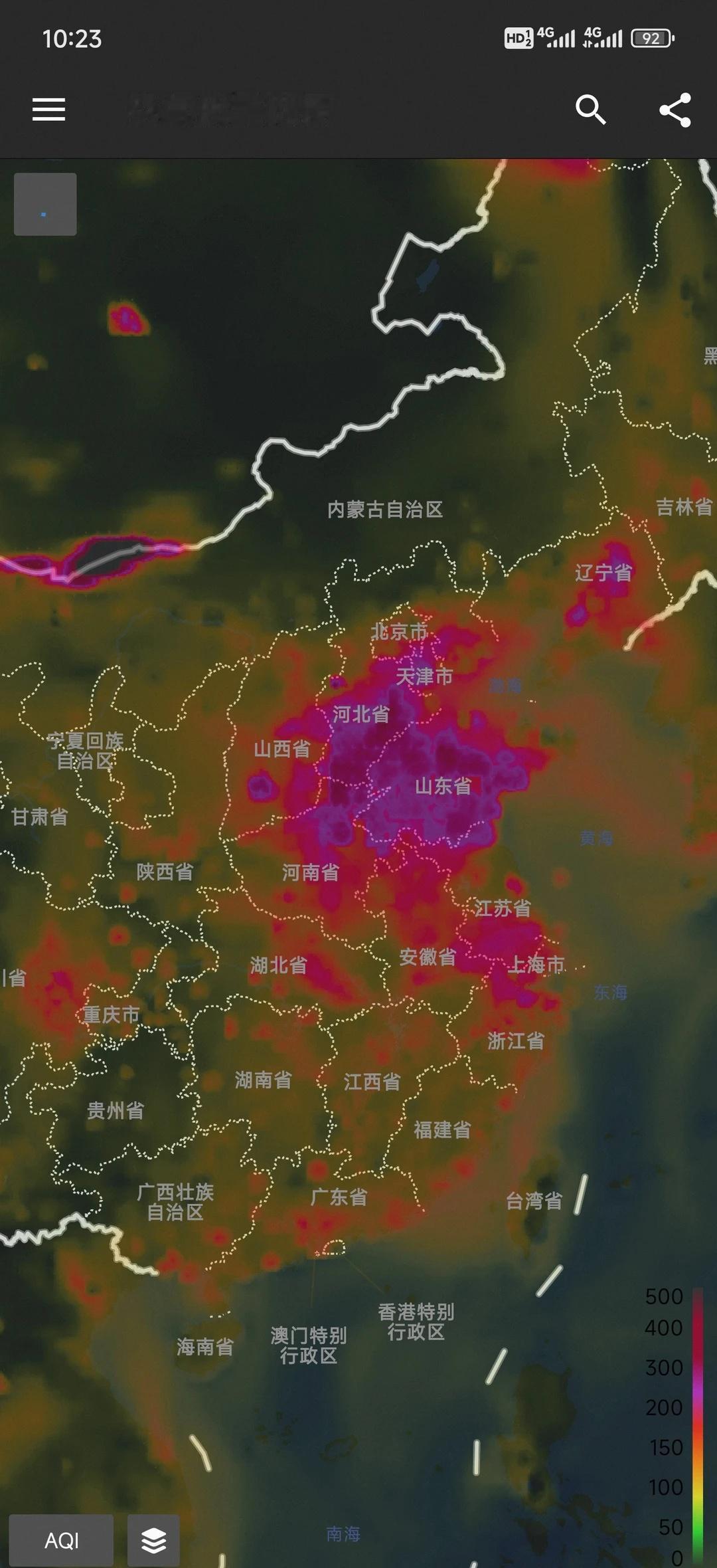 今日空气污染登顶的是:山东菏泽 山东河北等地aqi接近300!简直令人咋舌空气
