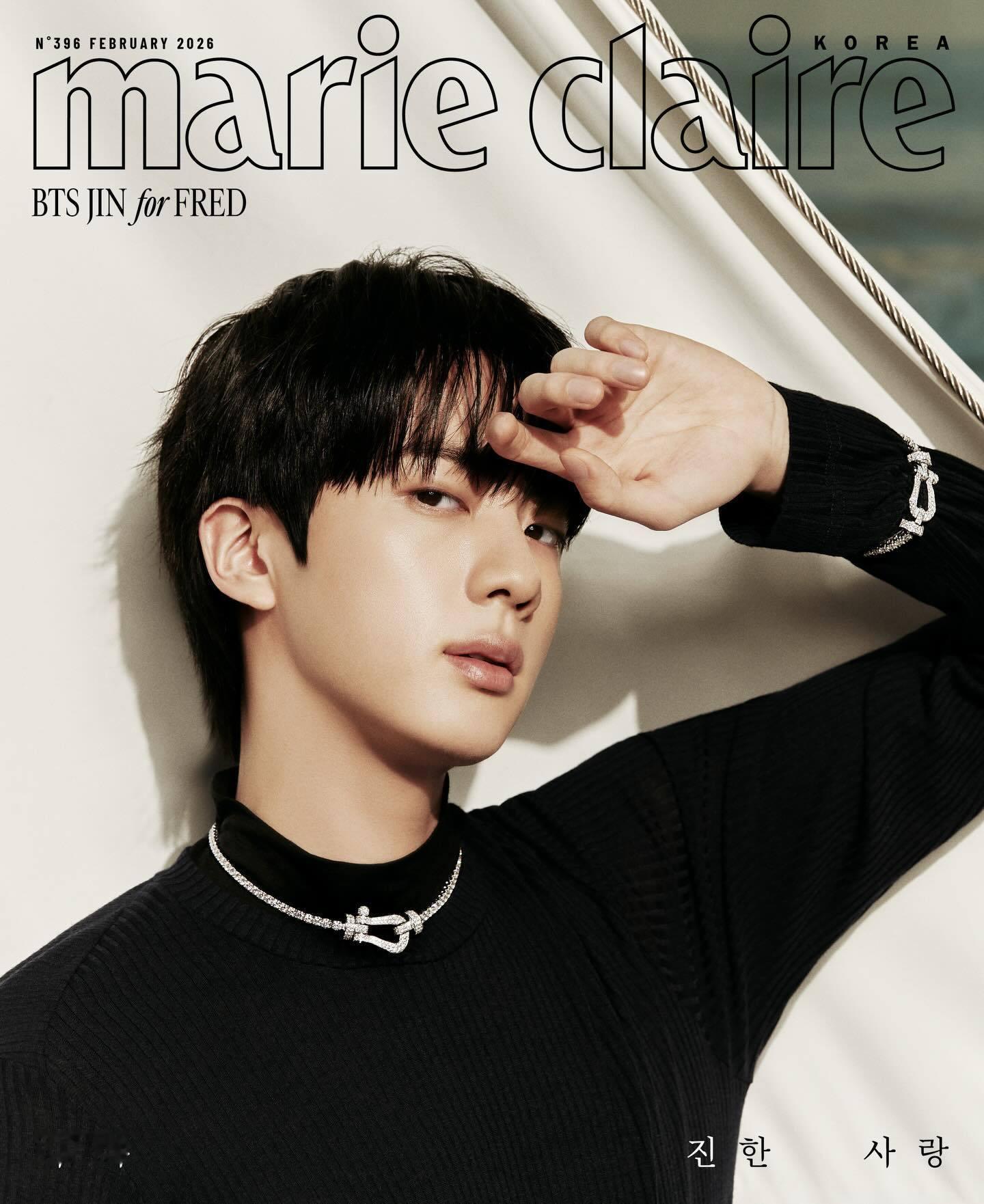 金硕珍 × Marie Claire Korea February 2026.BTS JIN 登封「Marie Claire」韩国版二月刊封面,佩戴 FRED Force 10 系列珠宝亮相,品牌全球代言人以豪华七封面配置闪耀登场💎风格大赏