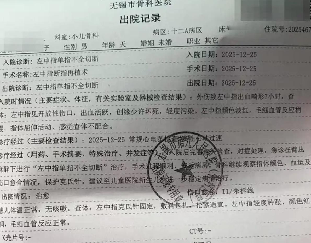 一名专业的助产士,竟然在给新生婴儿剪脐带时,把对方的手指给剪断了,这听起来像是天方夜谭的事情,竟然真的在现实生活中上演了! 在去年12月25日的时候,产妇张某某在盱眙县人民医院产下一名男婴,而助产士给婴儿剪脐带的时,竟然把孩子的左中指单指不全切断。虽然事后涉事的医院,及时把婴儿转到其他医院,为患儿成功进行手术治疗,婴儿也已经出院处于康复中。并且涉事的助产士,也已经被停职处理。可这事不应该到此结束。 第一,这样低级的错误不应该!如果是手术中出现错误,这个咱都是可以理解的,毕竟谁也不能保证,手术就一定百分百成功。可问题是这个基本上是属于手术结束,而剪脐带就是一个普通不能再普通的操作。说直白点就跟咱们剪一个线头差不多。可就是如此简单的操作,仍旧出了问题,而且问题还相当的严重。 说实在的,到现在我都无法想象,这名所谓的专业助产士,她到底是如何操作的。而一句婴儿手部突然乱动,也从来不是犯错的理由。你完全可以等孩子稍微安静时再剪,再不济也可以找人帮忙,先暂时控制一下婴儿,不让孩子乱动。可这些你都没有。再者,就算孩子乱动,你剪之前,不应该确认一下吗?可很明显,你并没有确认。所以我都怀疑她肩膀中间,长的是不是一个榆木疙瘩。 这一低级的错误,原本是能够避免的,可却没有避免,背后透露出的,不仅仅是操作人员不规范的问题,而是他们不专业的问题。剪一个小小的脐带,都能闹出这样的事情,那要是大点手术,是不是还会出更大的错误,以后谁还敢相信你们啊? 第二,恢复容易恢复如初难!虽然在通报中讲到,孩子的手术很成功,现在已经处于康复阶段,可你要知道的是,哪怕是再成功的手术,也都不如原生的灵活。小的时候或许对孩子没太大的影响,但是必然会影响到他未来的择业,甚至是因为手上的这个伤痕,会让他失去了很多选择的机会。而且要知道,这个错误原本是能避免的,而且孩子本身还是无辜的。 因此对医院这边来说,或许只是一个小失误而已,但是对孩子来说,却几乎可以决定了他的人生。当然我知道现在埋怨涉事的助产士,其实也改变不了任何的问题,但我觉得只是停职处理,这样的处罚是有点过轻了,非但不利于相关责任人吸取教训,还不利于其他人引以为鉴。