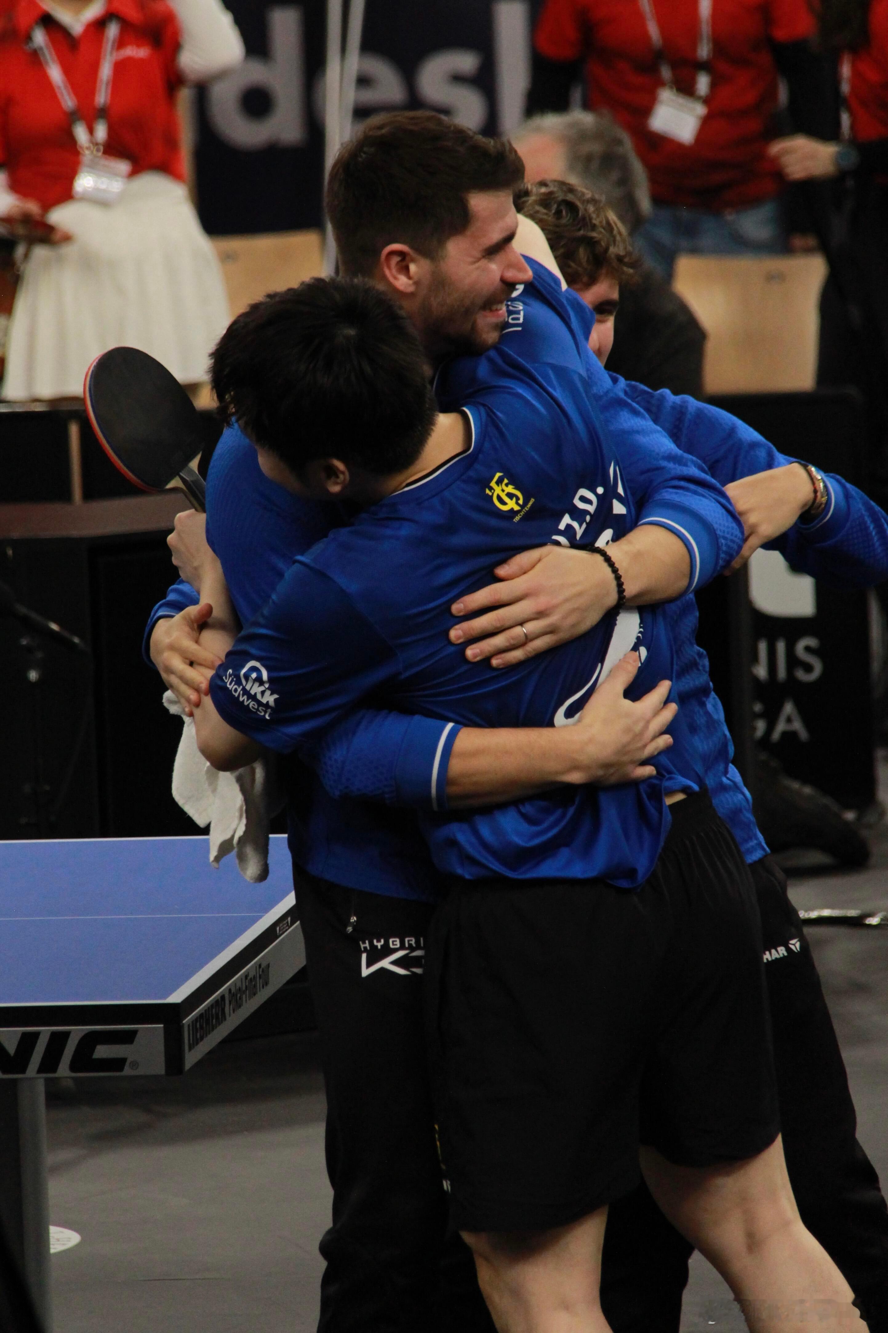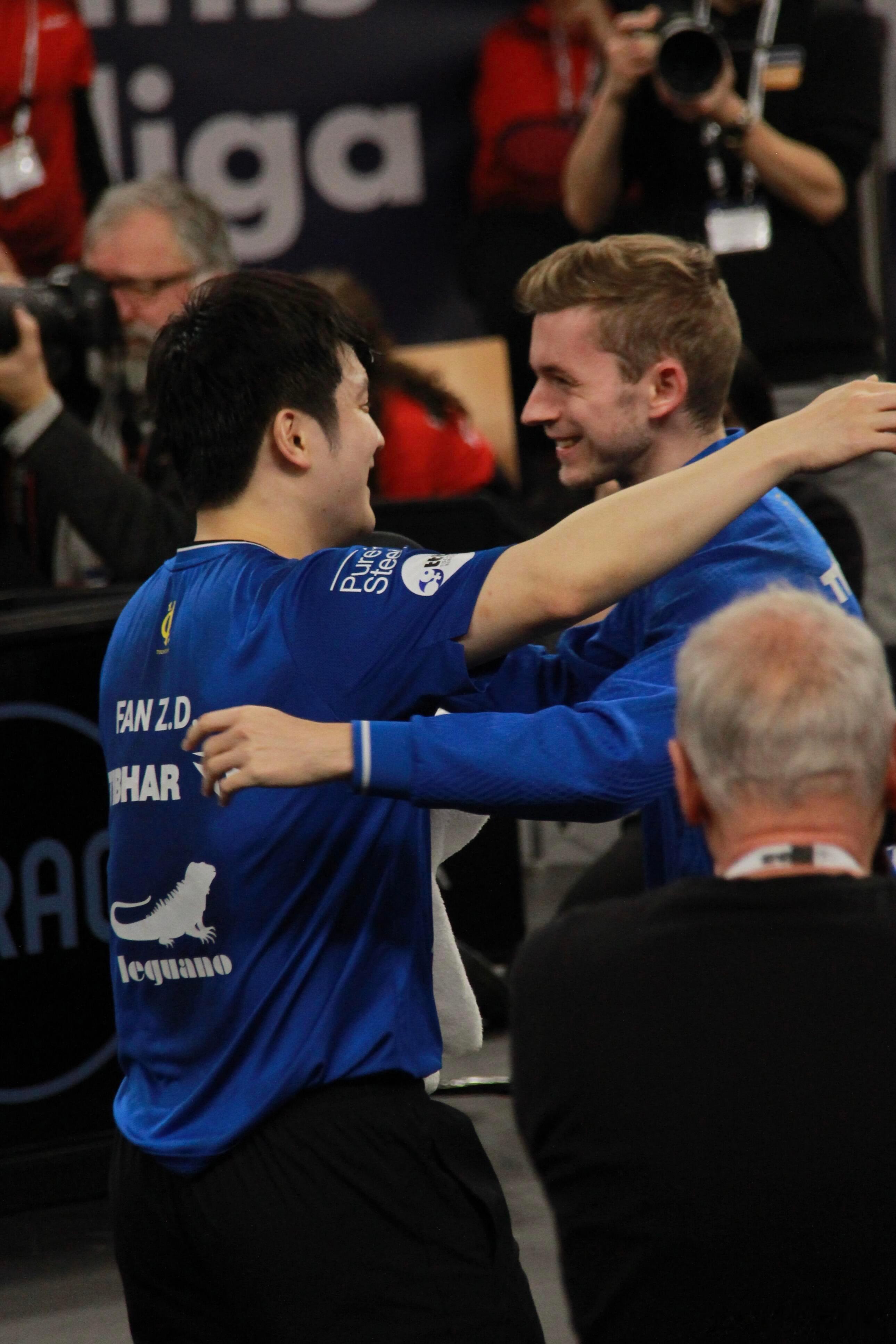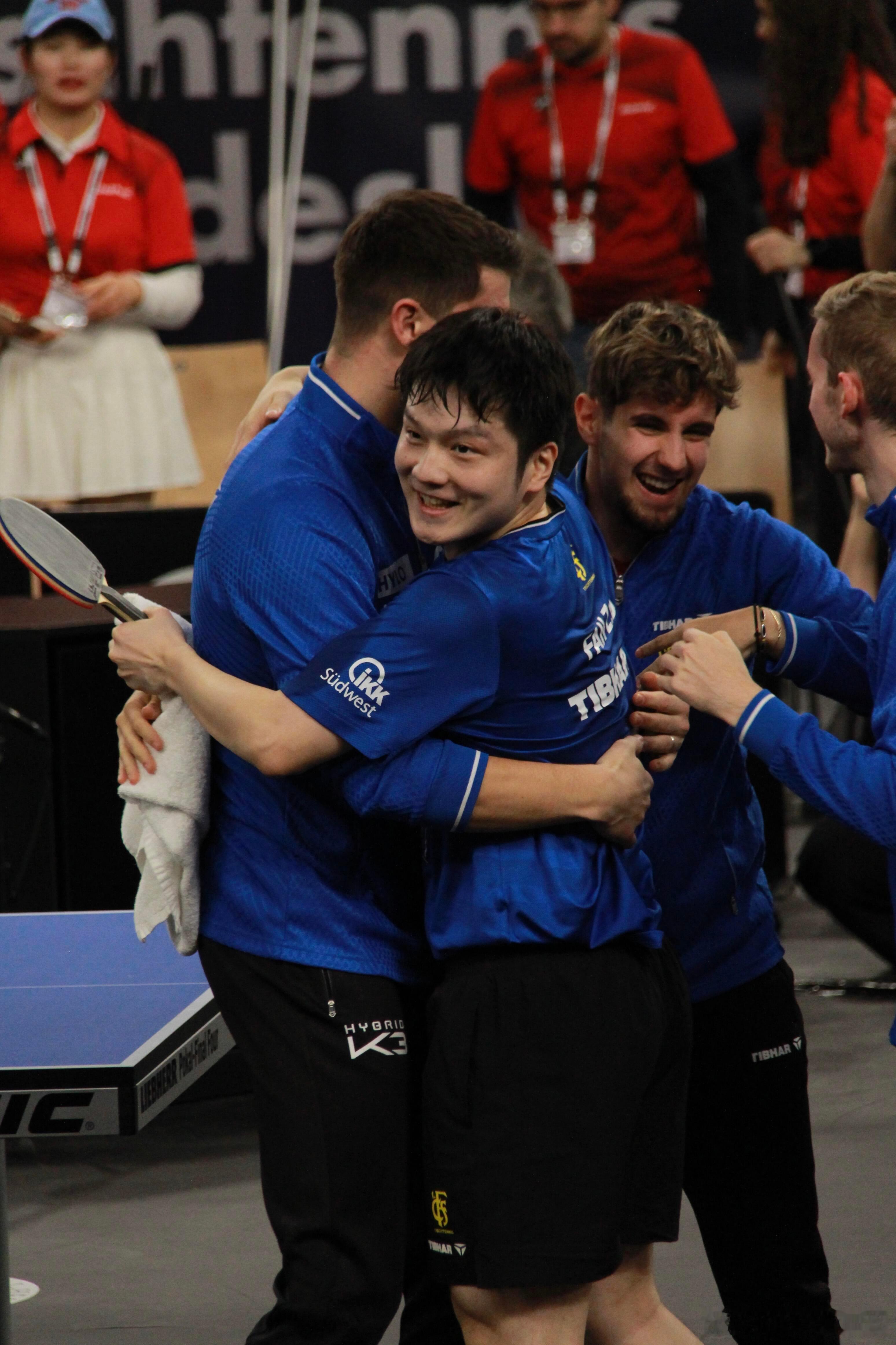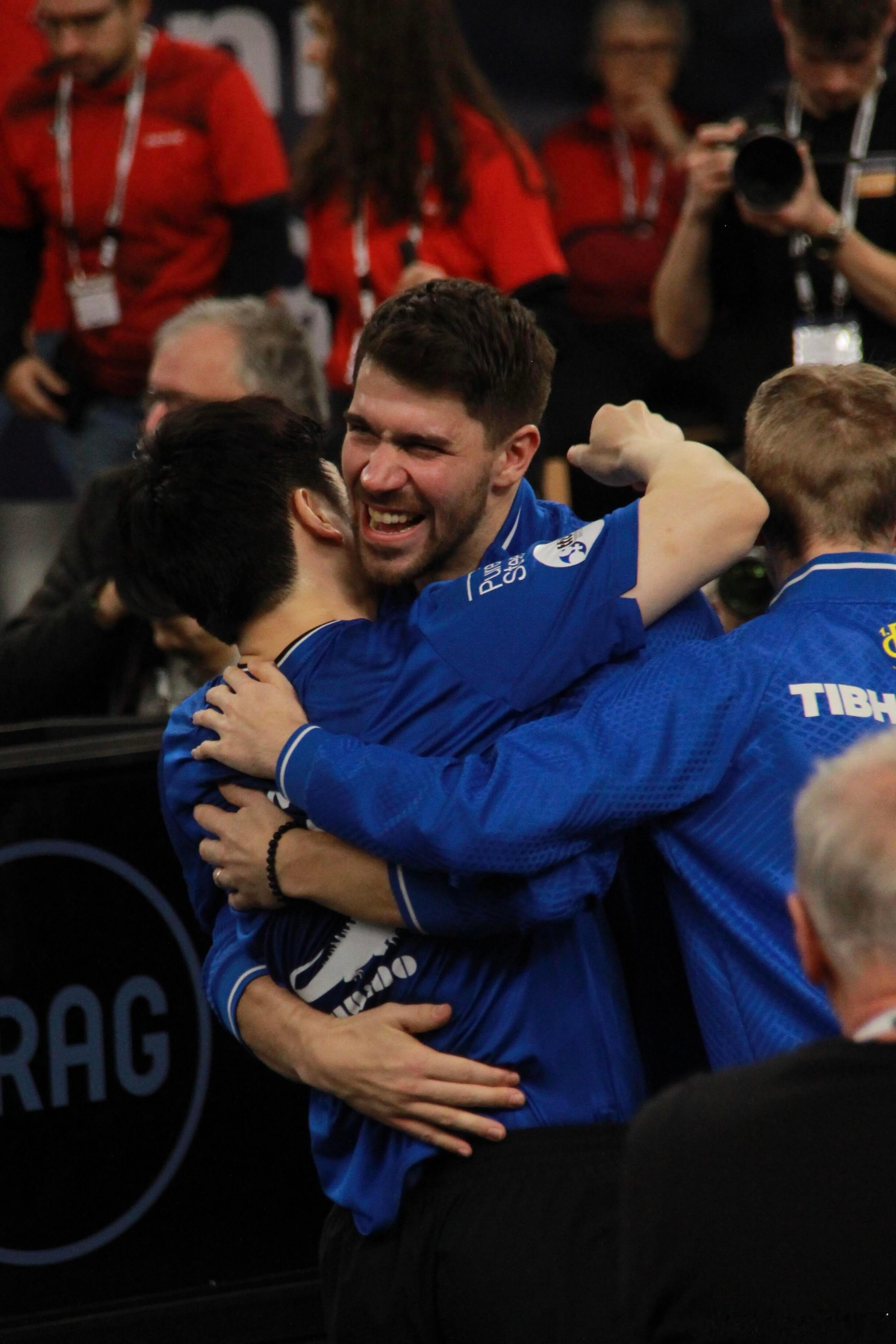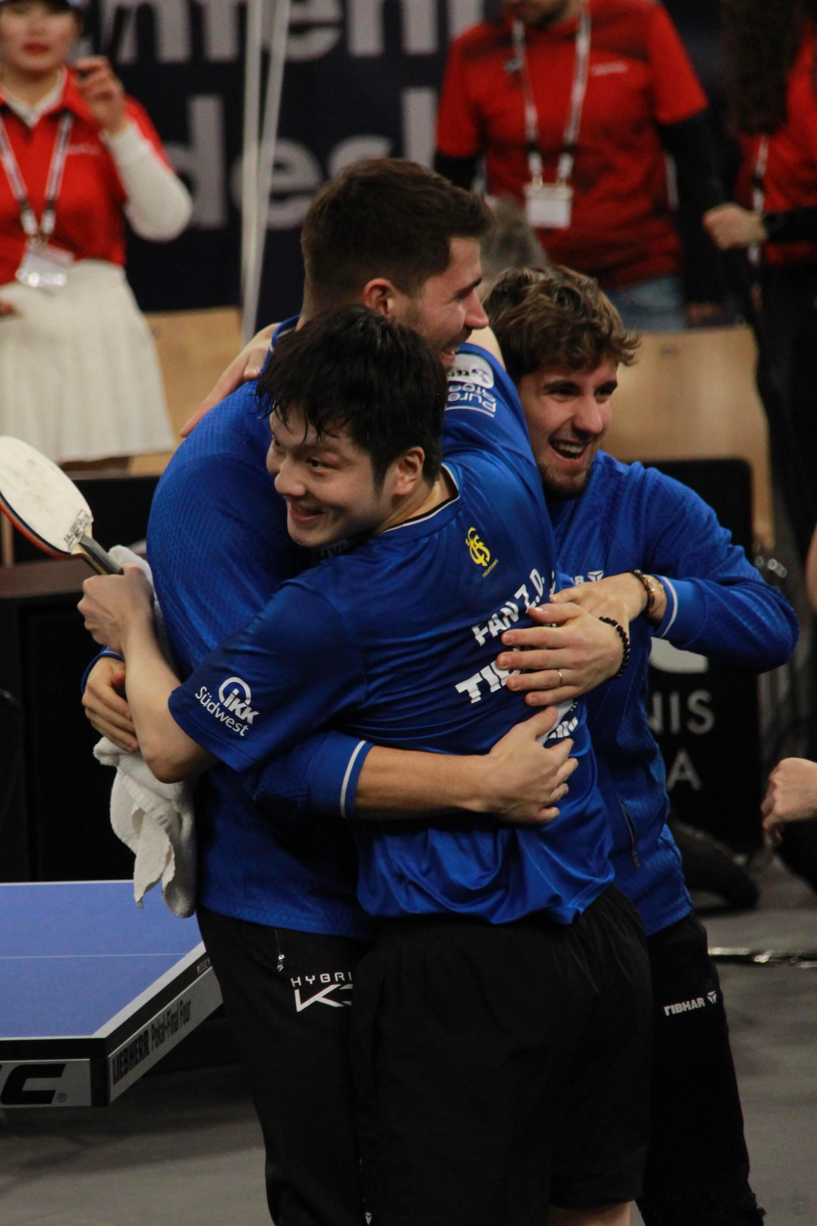 随着樊振东的最后一分落地,队友飞奔而来的相拥,是合力,更是滚烫的团魂!这一刻,萨尔布吕肯彻底燃了!