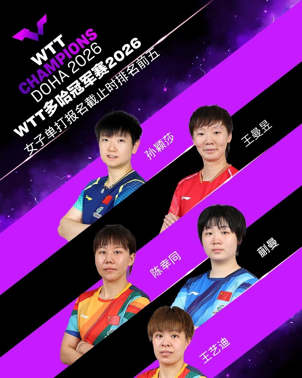 万万没想到,WTT多哈冠军赛明日即将开赛,但热度不是参赛的球员,而是不参赛的球员。 WTT多哈冠军赛明日将要开战,国乒派出了几乎是最强阵容。男单除了王楚钦有伤在身,为了保险起见,放弃参赛外,其他的如林诗栋,梁靖崑,向鹏,陈垣宇和周启豪都参加比赛。 女单也是世界第一的孙颖莎伤病原因也是选择不参赛。而王曼昱,陈幸同,蒯曼,王艺迪,陈熠世界排名前十的女单都悉数参加。 从热度来看,孙颖莎和王楚钦不参赛成为焦点,大家都说莎头不参赛,电视机都不准备打开了,没有意思。不过我想说的是看比赛是奔着比赛的精彩程度去的,相信莎头不参赛,也不会影响到比赛的激烈和精彩度。若看比赛看的是人,反而失去了观看比赛的真正意义,这不是一个真正的乒乓球迷应有的态度。 朋 友们认为是不是如此呢