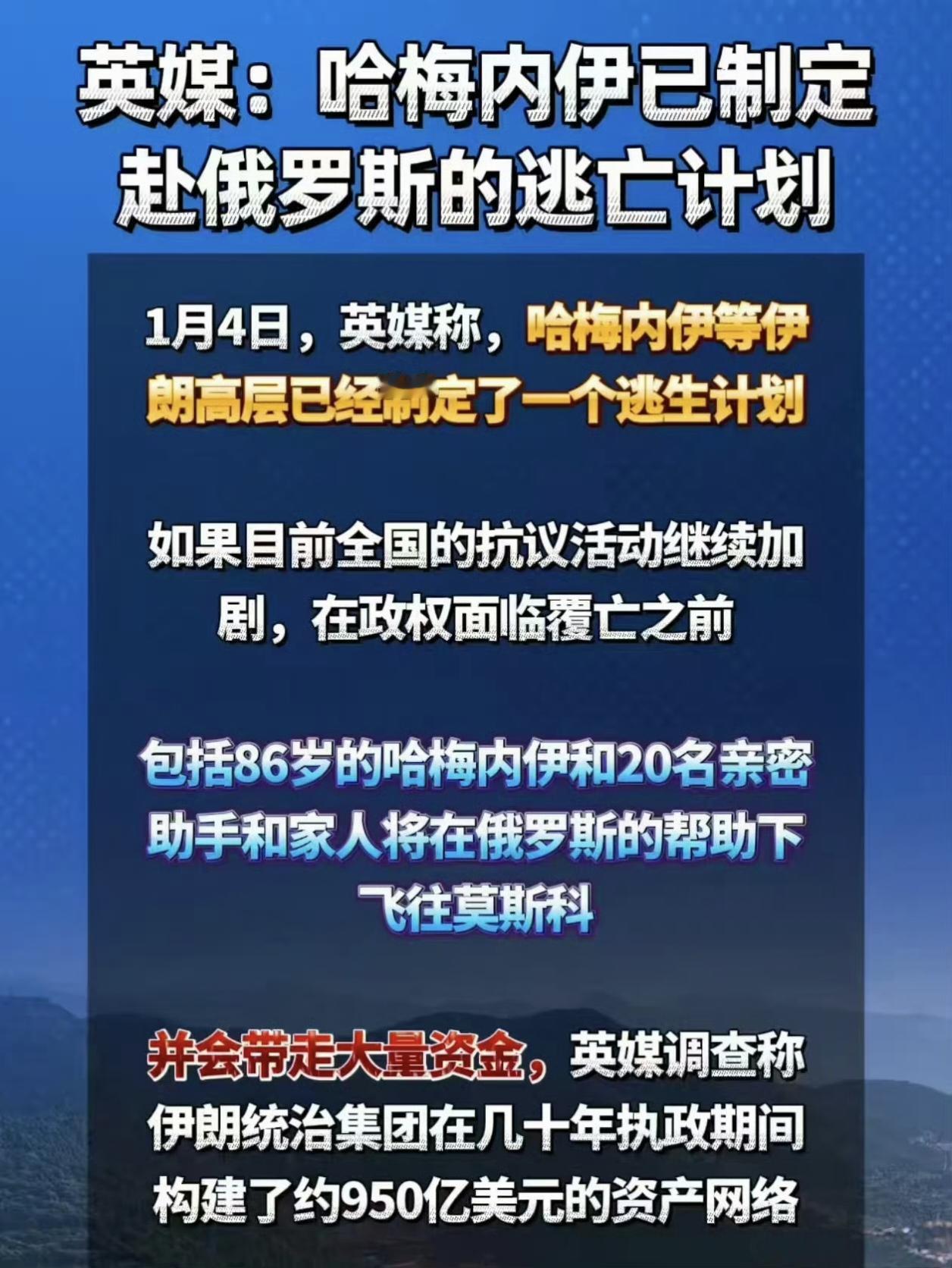 哈梅内伊已经制定赴俄罗斯的 逃亡计划!😱