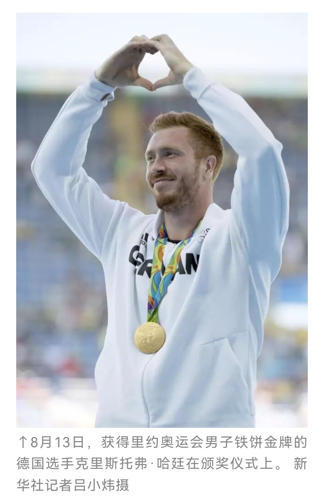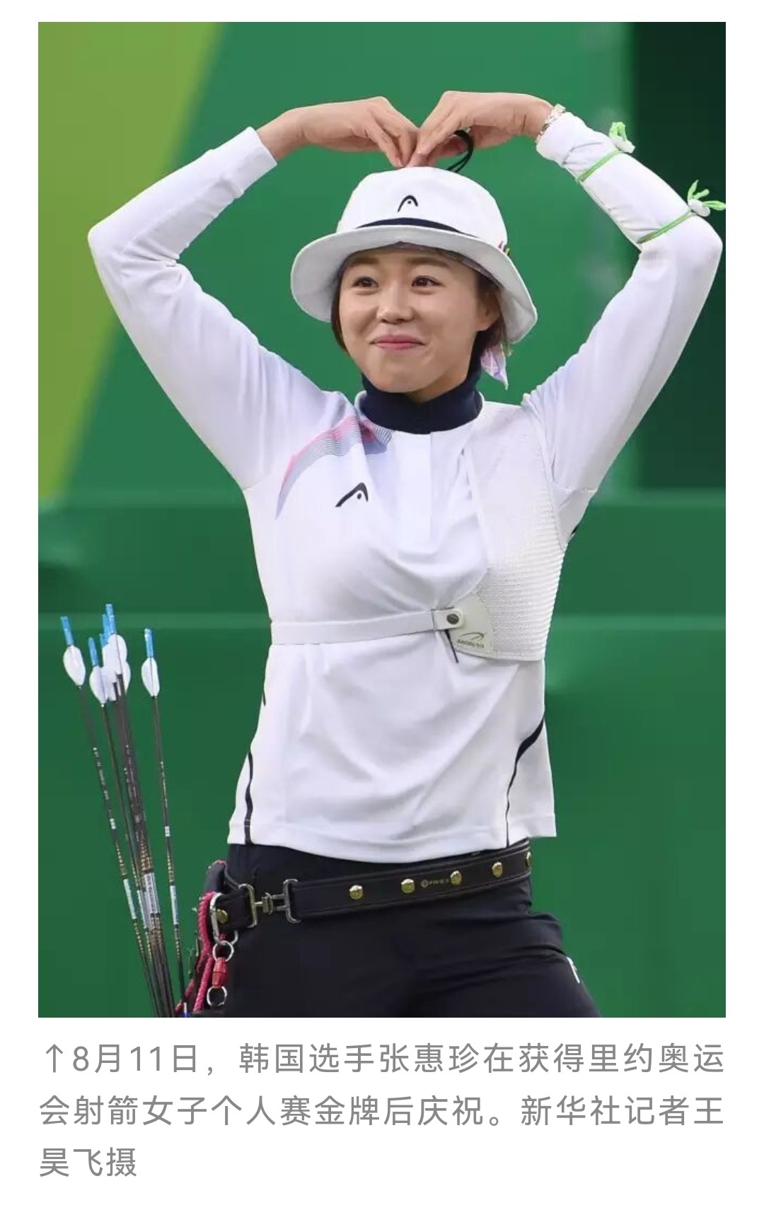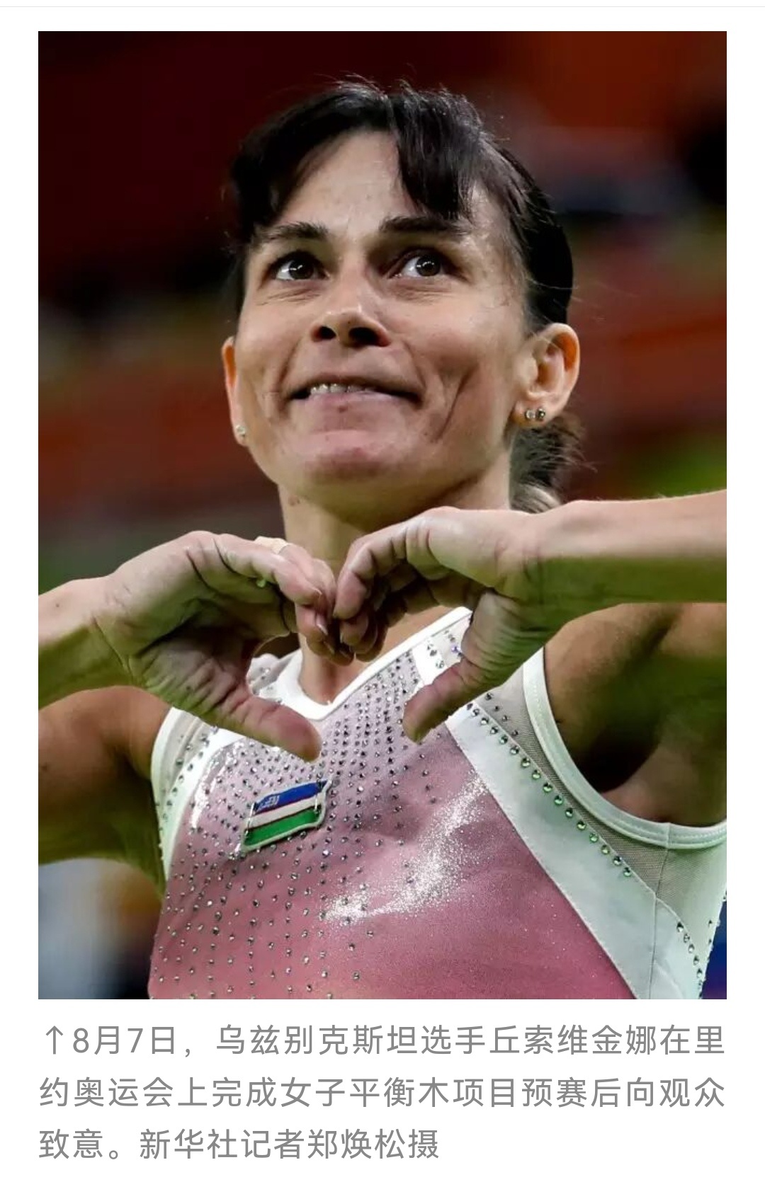 里约奥运会的比心,在自己的登顶时刻传递爱与团结,此时汗水还没有擦干,这是竞技体育