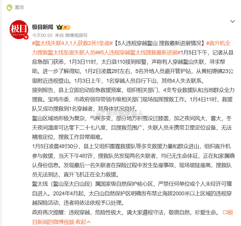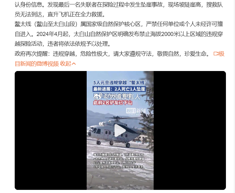 鳌太线失联4人1人获救2死1坠崖 生死由命、富贵在天闯入一个经常出人命危险的禁区,最好遇到麻烦不要动用公共资源毕竟你们违反劝告,闯入之前,觉得自己很勇的直升机全力搜救鳌太线坠崖失联人员,5人违规穿越鳌太线搜救最新进展,热点观点
