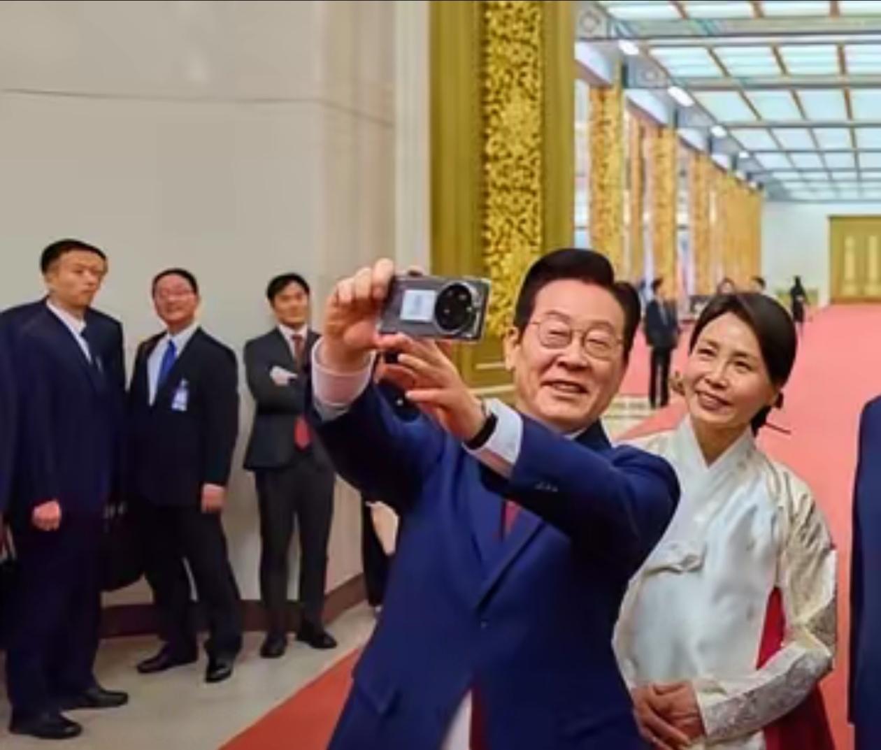 韩国总统李在明在社交媒体上发布了一张照片,并说:“多亏了‘你’,我才能拍出人生中最棒的照片。”显然李在明意有所指,话中有话。 照片中的背景是中国的北京人民大会堂,手机是中方送给他的小米智能手机。李在明看上去心情特别好,可见他对北京的访问是非常重视的,且十分满意的。