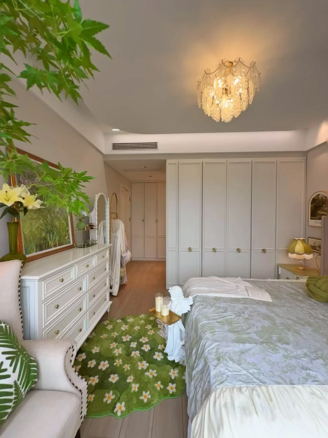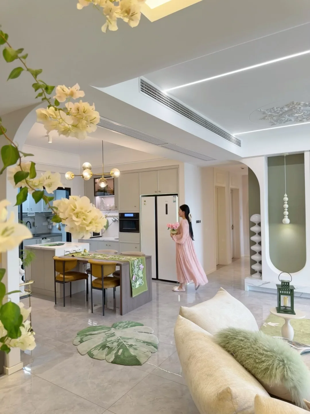四年前和老公攥着所有积蓄,拥有了人生第一套房。 我俩拼尽全力,一点点抠细节,刷墙、选软装、累到瘫在地板上时,看着空荡荡的屋子,却满是对未来的盼头🏠 装修完发了,也意外成为很多姐妹心中的dream house✨做起了家居博主。 后来我们在这里有了宝宝,儿女双全,日子热气腾腾💕 曾经人生也有过至暗时刻,但是总会被现在的小幸福所满足。 看着客厅里追跑打闹的小小身影,闻着厨房飘来的饭菜香,再望一眼阳台悄悄绽放的花,就觉得…人生很值得 🔥言归正传,关于这套房子,说点你们想知道的 ✅户型&花销:建面198㎡套内160㎡,4房改3房,全屋装修落地不到60个,轻法式装修风格 💡几个实用装修技巧,你一定用得上 1. 预算控价:提前列装修清单,不超过±10%浮动 2. 空间扩容:弃小卧室换大客厅,采光直接翻倍 3. 硬装重质:水电不马虎,硬装重质量,软装统一色系风格不踩雷。全屋乳胶漆➕地砖通铺好打理 4. 无主灯设计:轨道灯+筒灯+氛围灯,我家是3000K暖光。空间温馨敞亮🌟 谢谢你们喜欢我家,愿姐妹们都住进梦中情房[萌萌哒R]