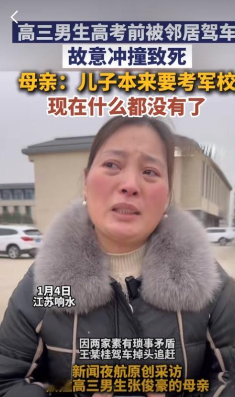 有些网友可能不知道,被判死刑的江苏响水36岁未婚男王某桂,他为什么故意开车撞击19岁高三学生张某豪,造成他重伤住院,一年后因救不回而离世。 在江苏响水的一个普通小镇里,这起命案像一道惊雷炸开,让很多人都愣住了,一个36岁的男人,没结婚也没正经工作,突然开车撞了19岁的邻家学生,还不是普通的撞,是故意下狠手,猛踩油门、连续加速、死命冲过去。 更让人难以接受的是,这个孩子不是别人,正是即将参加高考的邻居小伙,张某豪。 这事儿一传出来,大家都在问:他为什么要这么干?两个人既不是仇人,又没啥深仇大恨,怎么就下得去这个狠手? 但要是把这事儿往前捋一捋,那些看似不起眼的小事,其实早就埋下了祸根。 张家和王家,两家人住得不远,中间就隔着条巷子,低头不见抬头见,可偏偏就是这点“亲近”,反倒成了矛盾的导火索。 什么宅基地边界、鸡粪堆放、谁家先谁家后,这些鸡毛蒜皮的事,两家人争了好几年,嘴上不断,气也越积越大。 2024年年初,王某桂家把鸡粪堆在了张家门口,张某豪看不下去,报了警,这一下子,王某桂觉得自己在邻里之间“丢了人”,气就从这时候开始压在心里。 他觉得自己在家里是个顶梁柱,在村里却让一个小孩打了脸,越想越不是滋味,之后还放了狠话,说让张某豪“别想顺顺当当考上大学”。 听到这句话,张家人当时也没过分当回事,以为就是嘴上说说,可谁能想到,这句话竟然成了真。 时间到了5月底,离高考只剩下一周不到,这天中午,张某豪照常骑着电动车去学校,谁都不会想到,这趟路成了他人生的最后一段路。 王某桂开着车迎面碰上了他,原本两人擦肩而过就没事了,可王某桂却突然掉头,开始在马路上“追人”,监控画面里可以清楚看到,他不仅一路紧跟,还不断加速,几次变道,最后直接从后面撞了上去,一下子把张某豪撞飞了出去。 撞人之后,他不是逃跑,而是打了电话报警,但他只说“出车祸了”,只字不提这是故意的。他想把这事盖过去,装作是普通意外,觉得只要不承认,别人就查不到真相。 可人算不如天算,警方调录像、查数据,加上他在拘留所里跟人说过的那些话,全都成了证据,一点点拼凑下来,整个过程清清楚楚,就是蓄谋已久,就是下了决心要让张某豪“出事”。 张某豪被撞时伤得很重,当场昏迷,后来被紧急送往医院抢救,张家人不愿放弃,把他转到大医院,花了大价钱治疗,整整坚持了一年。 可惜最终还是没能挺过来,在2025年夏天去世了,一个原本该迈进大学校园的少年,就这样倒在了邻居的报复之下。 这事上了法庭,王某桂一开始承认了,可到了开庭时又改口,说自己“没想杀人,只是一时情绪上头”。 可法院不听这套,证据一条条摆在那儿,不是他一句话就能推翻的,车速、路线、加速次数,还有他事后的掩盖,全都说明——这不是一时冲动,而是早有预谋。 法院最后判了死刑,也没给他留下任何余地,因为这个案子,不只是一个普通命案,它背后有太多值得警醒的地方。 先说王某桂,他不是所谓的“精神异常者”,也不是“生活无着落的可怜人”,而是一个在小地方混日子的中年人,心里装着不少怨气,却从没想过怎么正经过日子。 他没有职业,也没有稳定生活,整天窝在家里,跟母亲住在一起,脾气也越来越古怪。 这种人在村子里不少,说白了就是活得不顺,心里又不服,别人家孩子有出息,他心里不是羡慕,是嫉妒,他不去努力改变自己的处境,却要把怒气撒在比他年轻、比他有希望的人身上。 张某豪要考大学,这对王某桂来说,就是一种“刺激”,他心里的那口气,早就憋得受不了。 再说邻里矛盾。很多人都觉得,两家人吵吵闹闹很正常,谁家没点小摩擦?但问题是,这些小事如果没人及时介入、没人出面调解,时间久了,就会变成大事。 这案子就是最明显的例子,从鸡粪到宅基地,从口角到报复,中间没有任何人出来管,也没人意识到这矛盾已经到了危险边缘。 还有一点,法律虽然及时出手,给了被害人家属一个交代,但很多伤害,是法律也弥补不了的,张某豪的父母,特别是他妈妈,从孩子被撞开始,就没有一天安心过。 一年时间,在医院里看着儿子躺着不动,心里多煎熬,谁能体会?等到法院判决下来,她说“孩子可以安息了”,可这话听着让人心酸,一个母亲,最大的愿望只是让儿子安心走完最后一程。 这场悲剧,说到底,是人心的扭曲,很多人事后反思,怎么才能避免这种事?其实不难,邻里之间有矛盾,村委会、社区干部不能只做表面功夫,要真下去了解情况、调解纠纷。 对那些性格偏激、长期无业、情绪不稳定的人,也该有机制关注,别等到“出人命”了才去追悔。 这案子虽然已经审完,但它留下的问题,远比判决书上的文字复杂,它让人看清了一个现实:在很多地方,人和人之间的矛盾,不是因为大事,而是因为没人管小事,一件小事没人理,就会变成一堆大事。