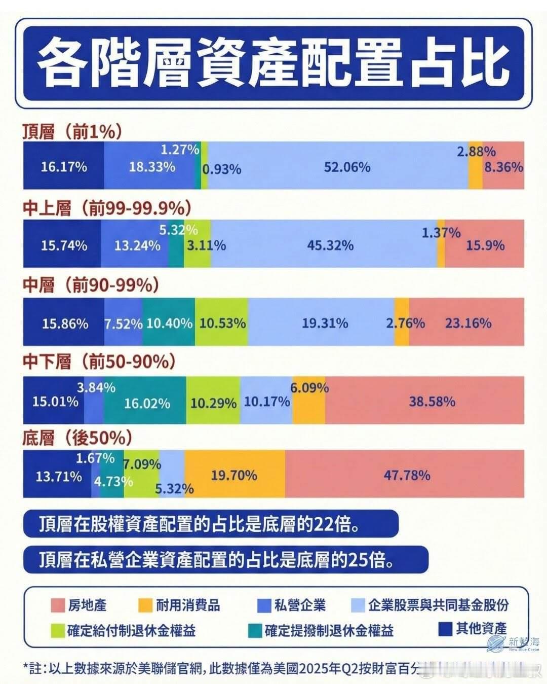 美国的各阶层资产分布情况。我相信,国内中产在房地产的比重大大超过这个。而且,国内真富豪其实也不咋投资(指:占比)在房地产上。具体分析,不方便说了。