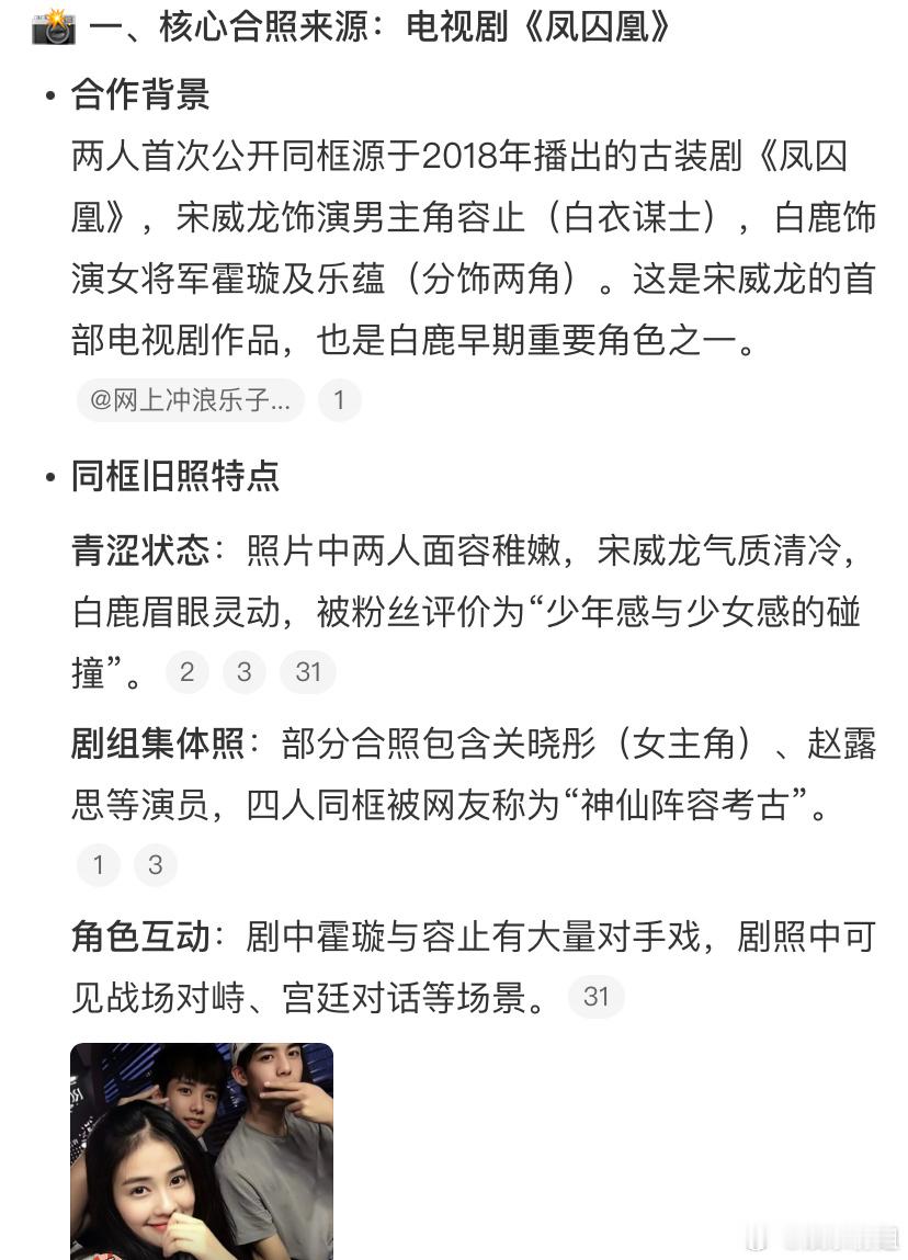 白鹿宋威龙早期旧照好青涩的合照早期的白鹿好美早期的宋威龙好权威两人曾合作过于正导演的《凤囚凰》2025微博之夜爆款创作大赛