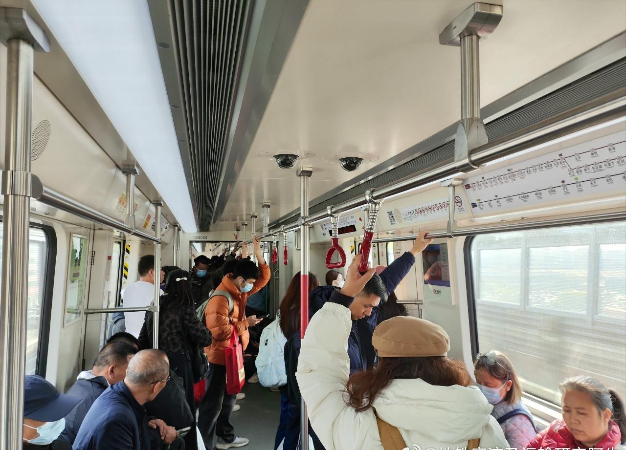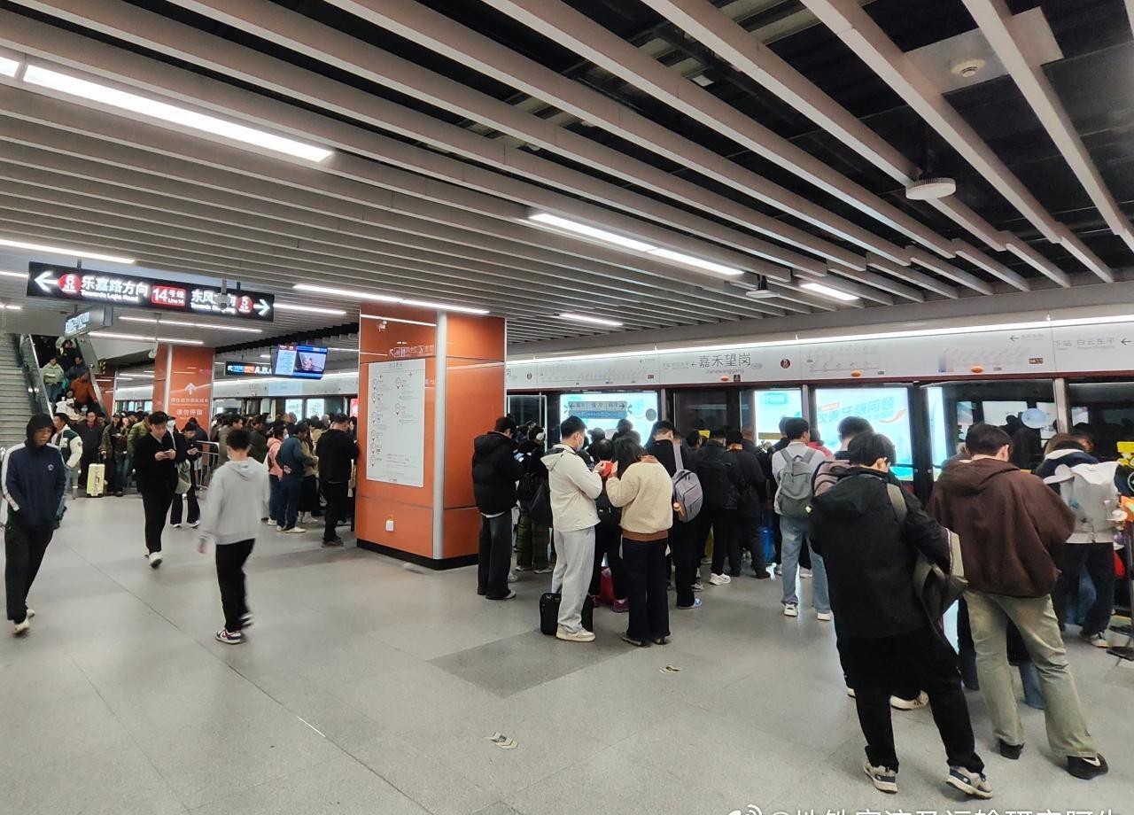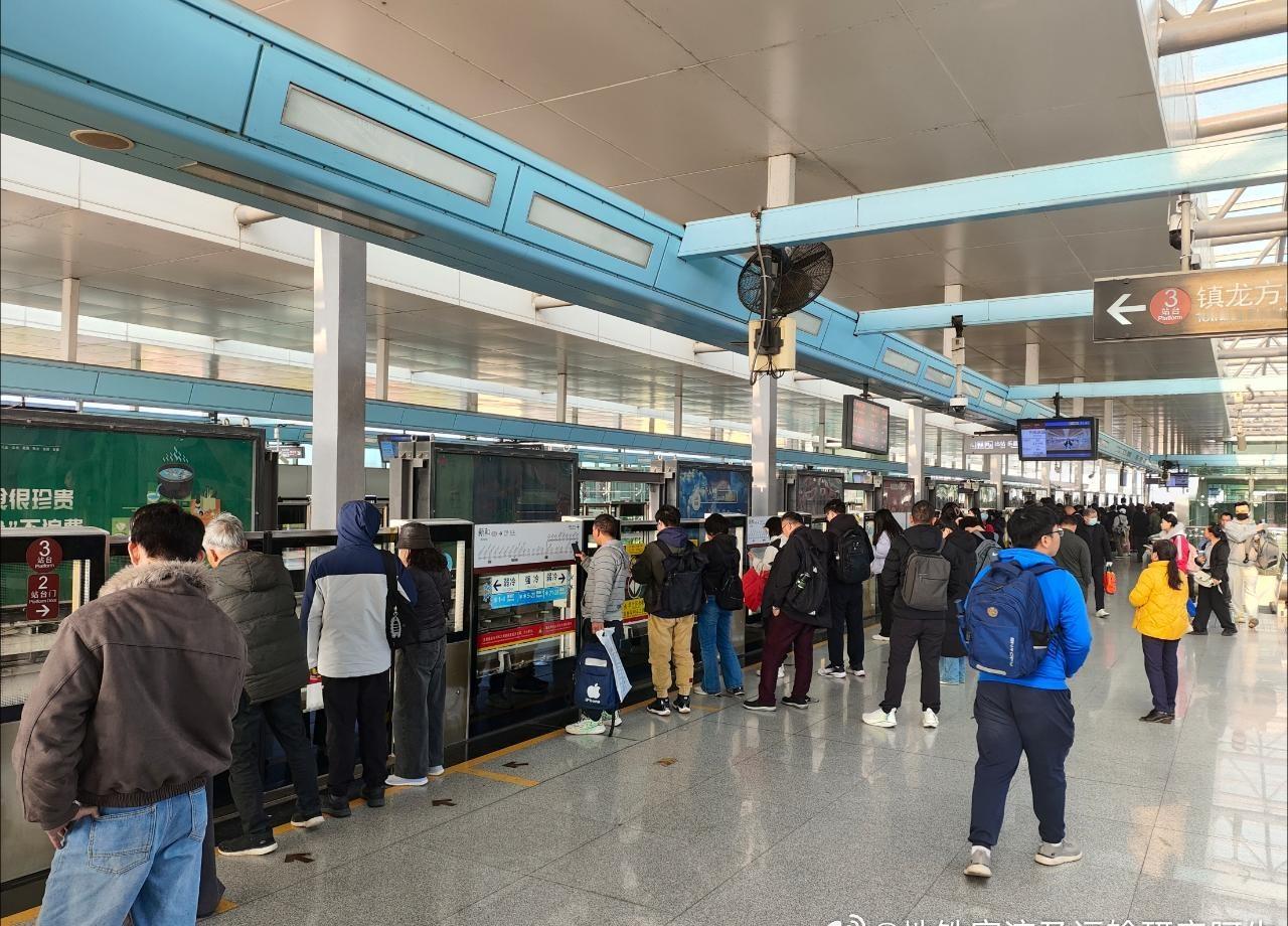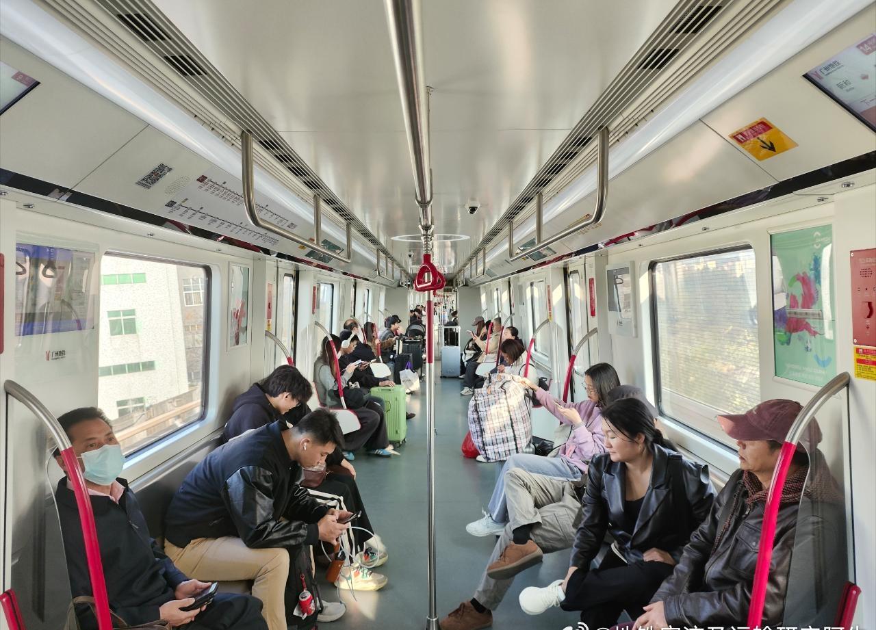 网友:2026年1月6日(周二)广州地铁客流画面投稿。 图1为14:59广州地铁2号线(6A)广州火车站→三元里客流; 图2为15:19广州地铁14号线(6B)嘉禾望岗站5站台东风方向候车客流; 图3为15:21广州地铁14号线嘉禾望岗→白云东平客流; 图4为15:35广州地铁14号线太和→竹料客流; 图5为15:49广州地铁14号线知识城支线(6B)新和站3站台镇龙方向候车客流; 图6为15:52广州地铁14号线知识城支线新和→红卫客流。