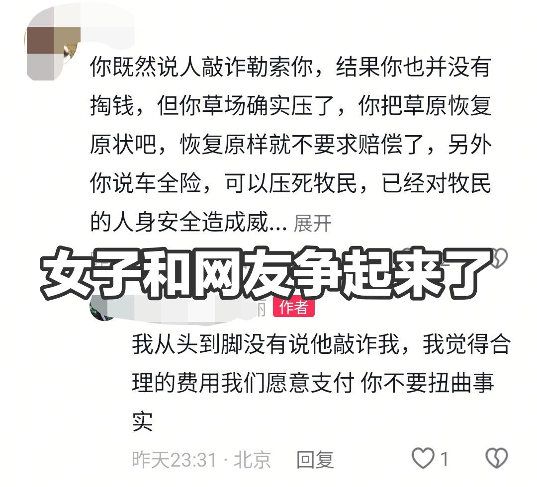 内蒙古赤峰,在草原开越野车,叫嚣有全险、撞死牧民都不怕的女子,被扒光了!车牌是宁波的,自吹是网红,实际粉丝才1200个,她和朋友是组队自驾游,但赤峰当地,已下令,禁止冬季越野车穿越,还劝返了200多辆违规车辆,但她却偏要逆势而为,特意去牧民的草场找刺激。 牧民发现后,也没狮子大开口,就想要200块钱,够后期恢复植被就行,这钱连法律规定的罚款零头都不到。 这女子倒好,只愿给20块,谈不拢就想开车跑,牧民怕她溜了,才挡在车前让她联系草监局,结果她直接急眼了,说出“撞死你有全险”这种没人性的话。 零下几十度的天里,枯黄的草原看似耐造,实际生态极度脆弱,她驾驶着浙B牌照的坦克越野车,在草场上反复漂移、爬山坡,把土壤压实,留下一道道车辙,这些被破坏的区域,起码要3-5年才能慢慢恢复植被。 事件发酵后,她还说视频是恶意剪辑的,但她连完整视频都拿不出来,反倒拉黑了九百多个质疑她的网友。 真是又横又怂。 她怕是脑子拎不清,真以为全险能兜底?保险是管意外的,不是让你故意伤人的!真要是开车撞了人,那可不是交通事故,是故意伤害,保险公司一分钱都不会赔,还得蹲大牢。 现在,当地已经介入调查了,按照《草原法》,她不光得把被碾压的草场恢复原样,还得交罚款,按草场前三年的产值算,3到9倍的罚款,可不是小数目,而且被她嚯嚯的草场,想完全恢复过来,最少得三五年时间,这下,有她后悔的了。