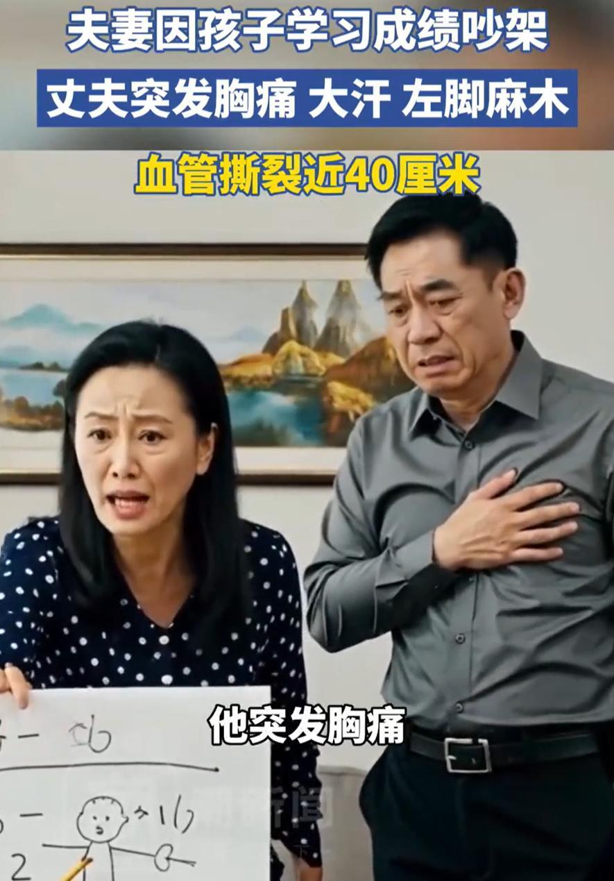 担心的事情还是发生了!浙江,40岁男子下班回家就听到妻子在骂孩子,他本想当个和事佬,结果却引火烧身,妻子连着他一起骂,男子一气之下血管气炸40cm,还好送医及时,不然真就麻烦了 事发当天,王先生拖着疲惫的身子下班回家。刚走到楼道口,就听见自家屋里传来妻子的斥责声和孩子隐隐的抽泣。他心头一紧,知道今晚又不太平了 推门进去,果然看见妻子正对着儿子发火,作业本摊了一桌子。问了两句才知道,孩子这次考试没考好,离预期差了一大截。妻子越说越气,声音越来越高 王先生也很无奈,但事情已经发生了,孩子的成绩也不是喊出来的,就想着安抚妻子,有什么事慢慢说 没想到这句话像点了火药桶。妻子猛地转过头,把矛指向了他:你倒会当好人!平时管过孩子学习吗?回家就往沙发一躺,现在来装和事佬? 两人你一句我一句,声音越来越大。王先生觉得血往头上涌,他想解释工作累,想说明自己不是不管,但话到嘴边都变成了争执。突然,他感到胸口一阵剧痛,像被撕开似的,冷汗瞬间湿透了衬衫,左脚也开始发麻 妻子见他脸色煞白、满头大汗,吓坏了,赶紧叫了救护车。送到医院一查,医生神色凝重:主动脉夹层,血管从心脏附近一直撕裂到腹部,将近40厘米,随时可能破裂。紧急手术做了好几个小时,王先生才捡回一条命 这件事真正让人不安的,不是吵了一架,而是很多人对身体发出的警告,早就习惯性忽略了。高血压不是病一阵子,是每天都在悄悄累积风险。情绪失控的时候,最先受伤的,往往不是关系,而是身体 健康是根,家庭是本。稳住情绪,照顾好自己,才能好好爱家人。这大概是人到中年最该明白的事