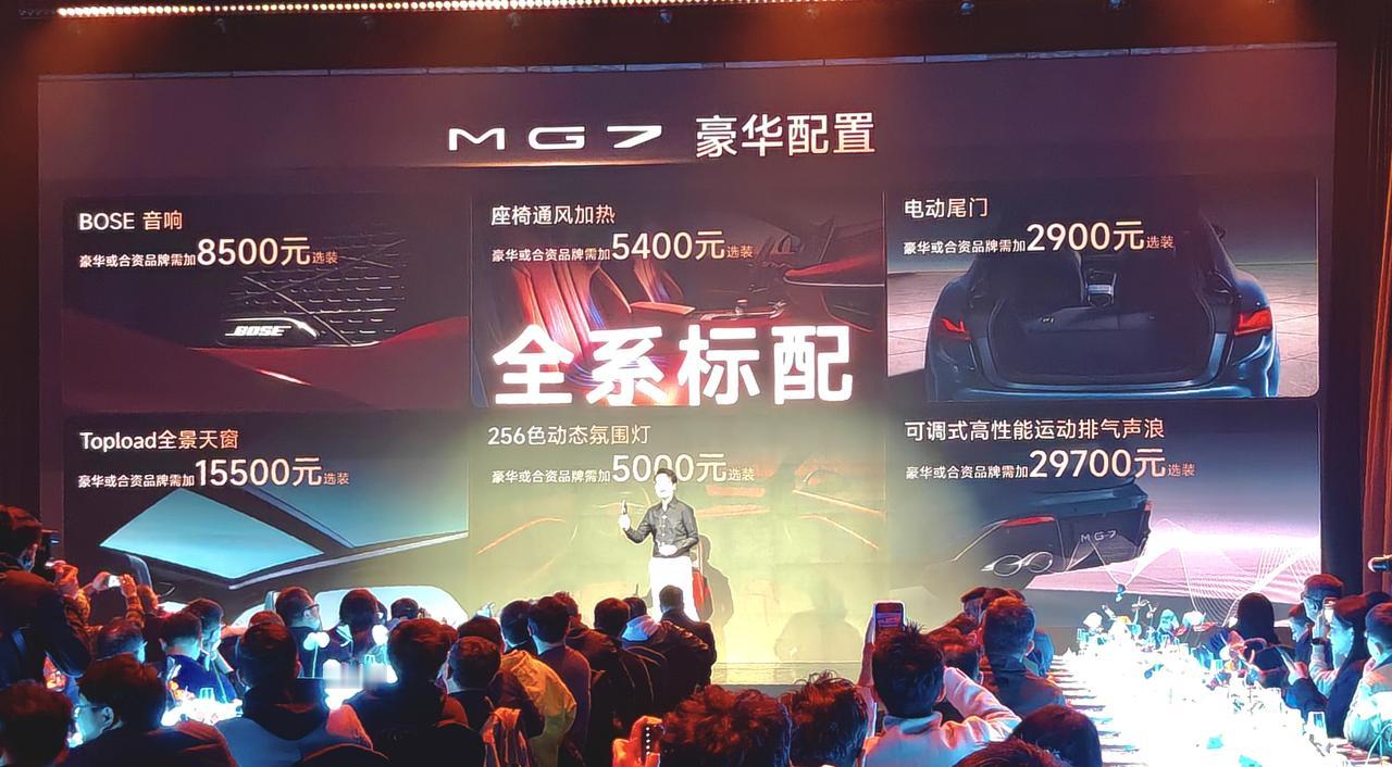 三段式电动尾翼、运动排气、BOSE音响,全系高通8155芯片+AI语音大模型,顶配还有mCDC+E-LSD+高速NOA,新款MG7卖你11.69-15.49w,如果你觉得迈腾天籁凯美瑞不够运动,你可以看看这款燃油运动轿跑。