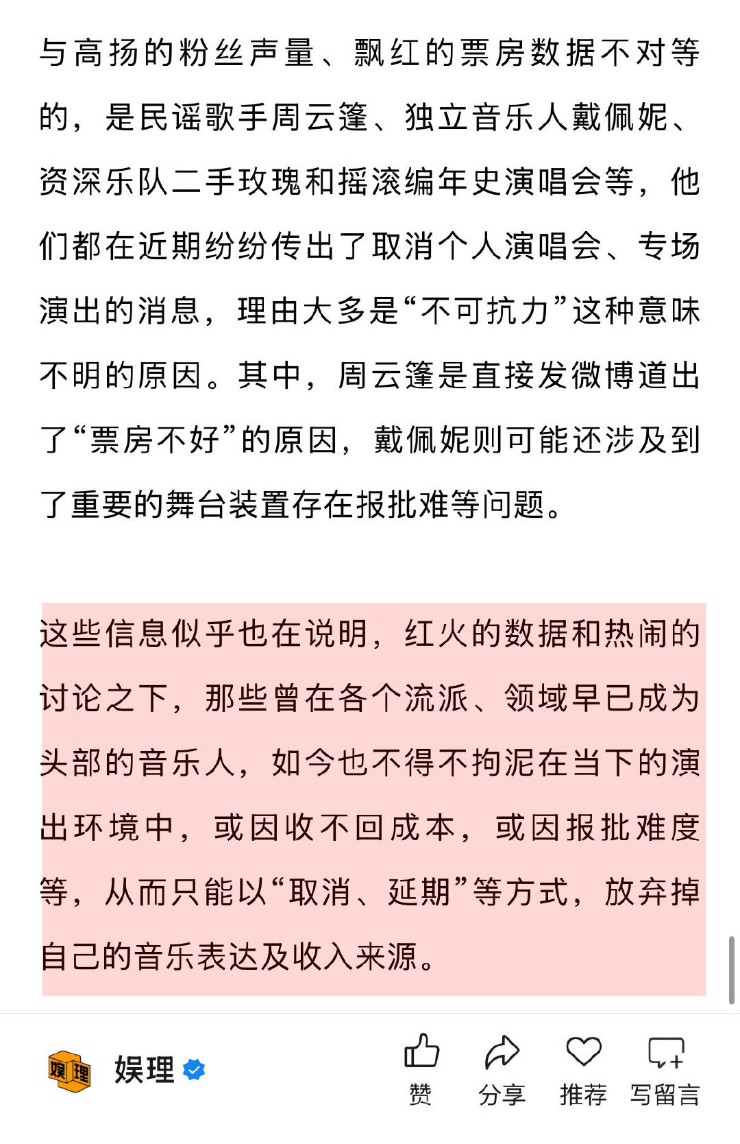 业内谈个人演唱会越来越多的原因业内说跨界流量音乐节秀费超百万从电影及长剧开机