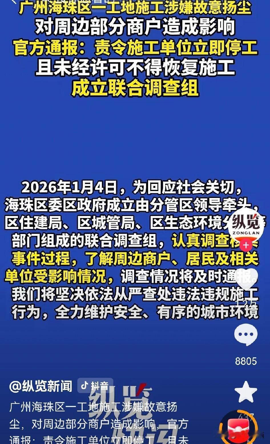 广州某地方扬尘的操作,确实让人看不懂啊! 当地的街道工作人员说这是操作失误,是使用雾炮车的时候忘记了加水,但现实情况是持续了好长时间。 吹起的扬尘就像沙尘暴一样,覆盖了整个的商业街区,在视频画面中完全可以看出,就像是走到了西北地区的沙漠里,而周边的汽车上,以及地面上全都铺满了一层厚厚的沙尘。 有人说,这一片商业市场是准备要拆迁的,但是这里的商户都拒绝搬走,现在好消息是当地的部门已经介入,将要对此事进行严查,看来会给商户一个满意的回答。