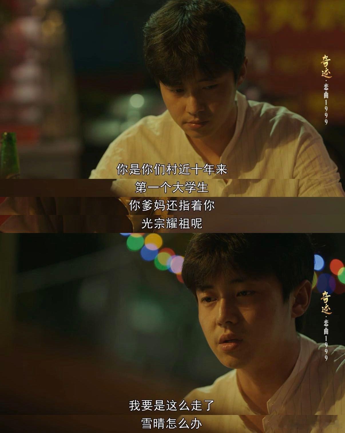 李兰迪翟子路校园恋爱be了也是he《奇迹》最新单元《恋曲1999》,把校园BE美学拍出了新高度,李兰迪和翟子路这对校园CP,虽然结局是错过,却让人感受到了另一种圆满的滋味。李兰迪演的吴雪晴为了男友高海天选择留在深圳读研,翟子路演的高海天却为女友拼命申请国外大学。两个人都用最真诚的心,阴差阳错地走出了两条渐行渐远的平行线。多年后,吴雪晴的女儿姜小岚推动高海天记忆复苏,笑着谈起来了那段尘封的1999年恋曲。真正的HE不是破镜重圆,亦或者当初一人放弃求学选择陪同,而是两个人都沿着各自的人生轨迹活得灿烂丰盛,就算爱人错过但是大家依旧让每一天都过得很有意义。李兰迪好有校园白月光的感觉,和翟子路搭校园情侣养眼且适配总台首部原创精品短剧集奇迹