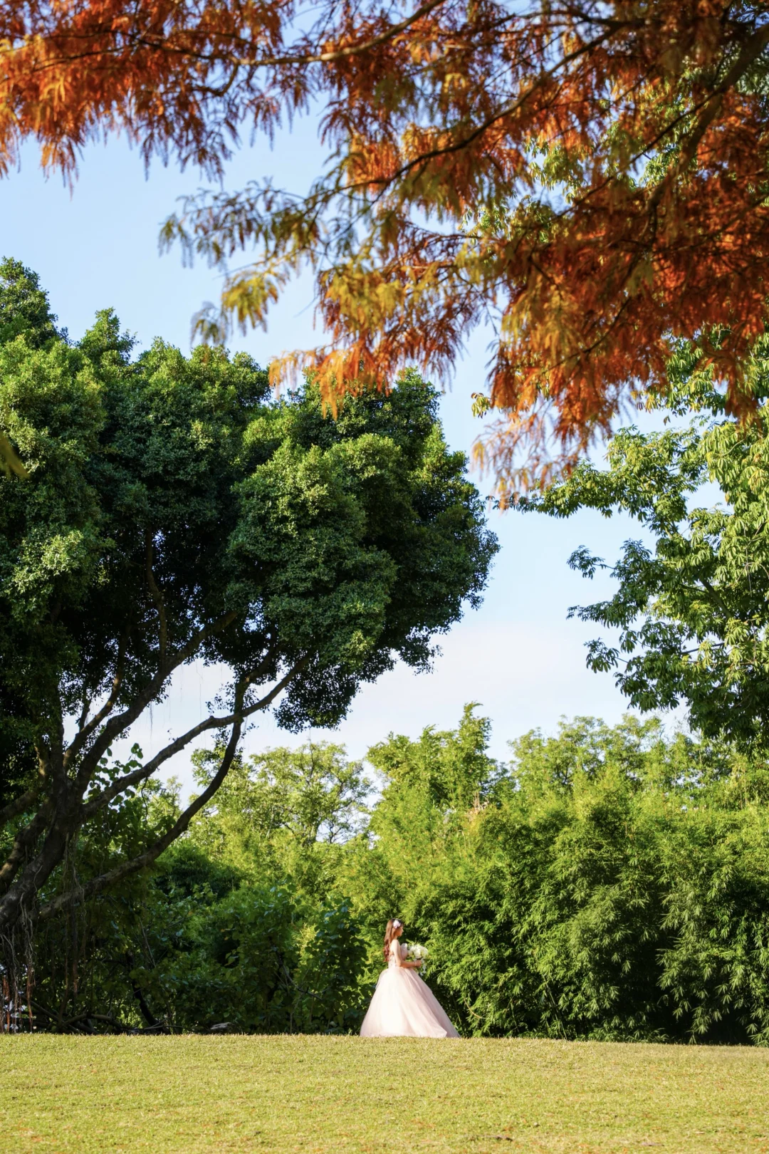 红裙映翠意盎然绿意漫过公园的枝桠,阳光透过树叶的缝隙筛下细碎光斑,落在她的