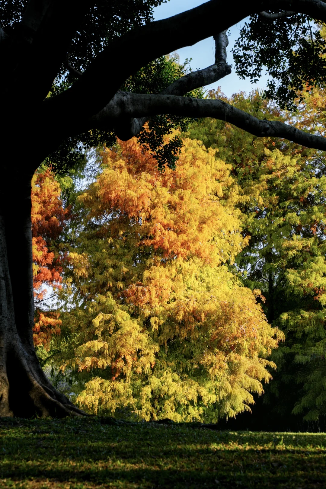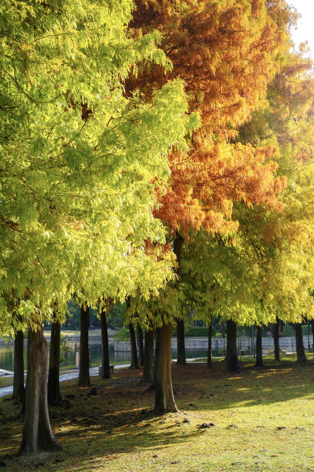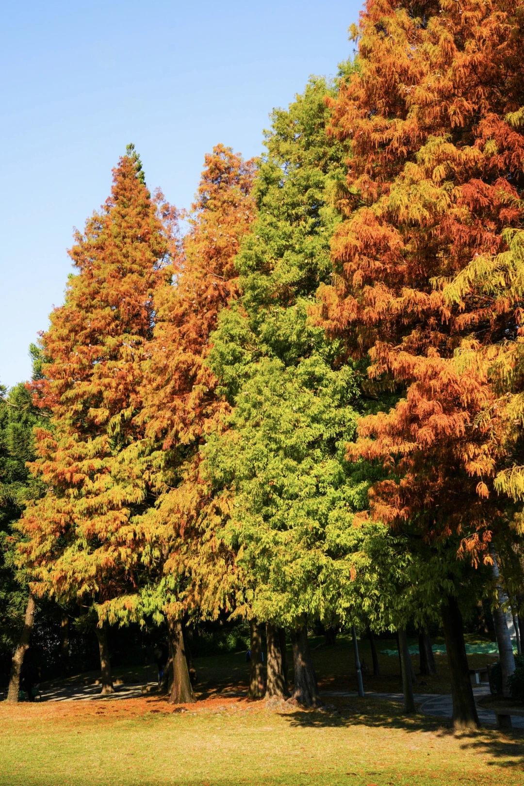 公园落羽杉 别样美 太阳晒着很温暖 晨光透过枝桠洒在橙黄橘绿的叶子上 像打翻了的调色盘 📍拍摄地点:南湖公园 🍂落羽杉浓度播报:70%