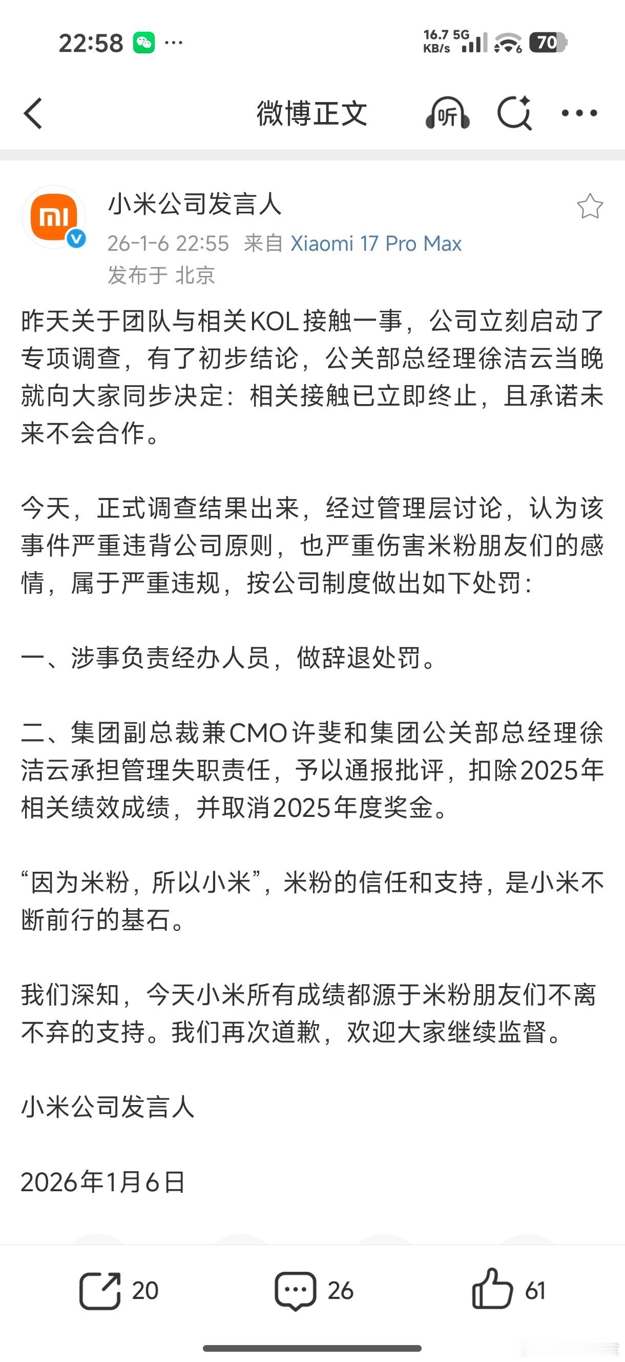 握草,这么严重的吗?感觉有点过了,真的不至于此…说实话,由于被大浪淘沙太猛了,这位小米员工也是想着解决一下,情有可原,真没有必要直接开除,许婶跟云姐负有领导责任,也被处罚了…