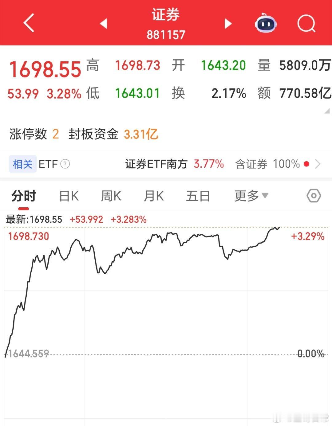 又放量超2200亿,证券也保持了强势,成交额逼近3万亿,有量,就有牛,我满仓满融。