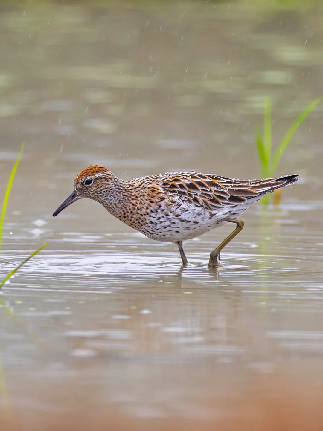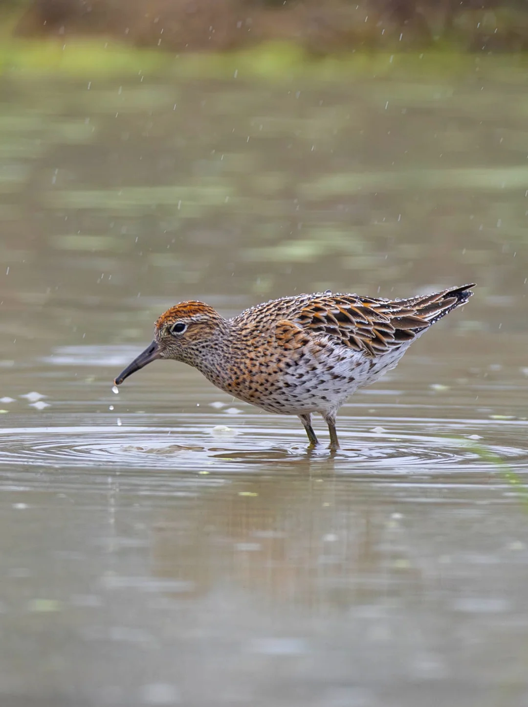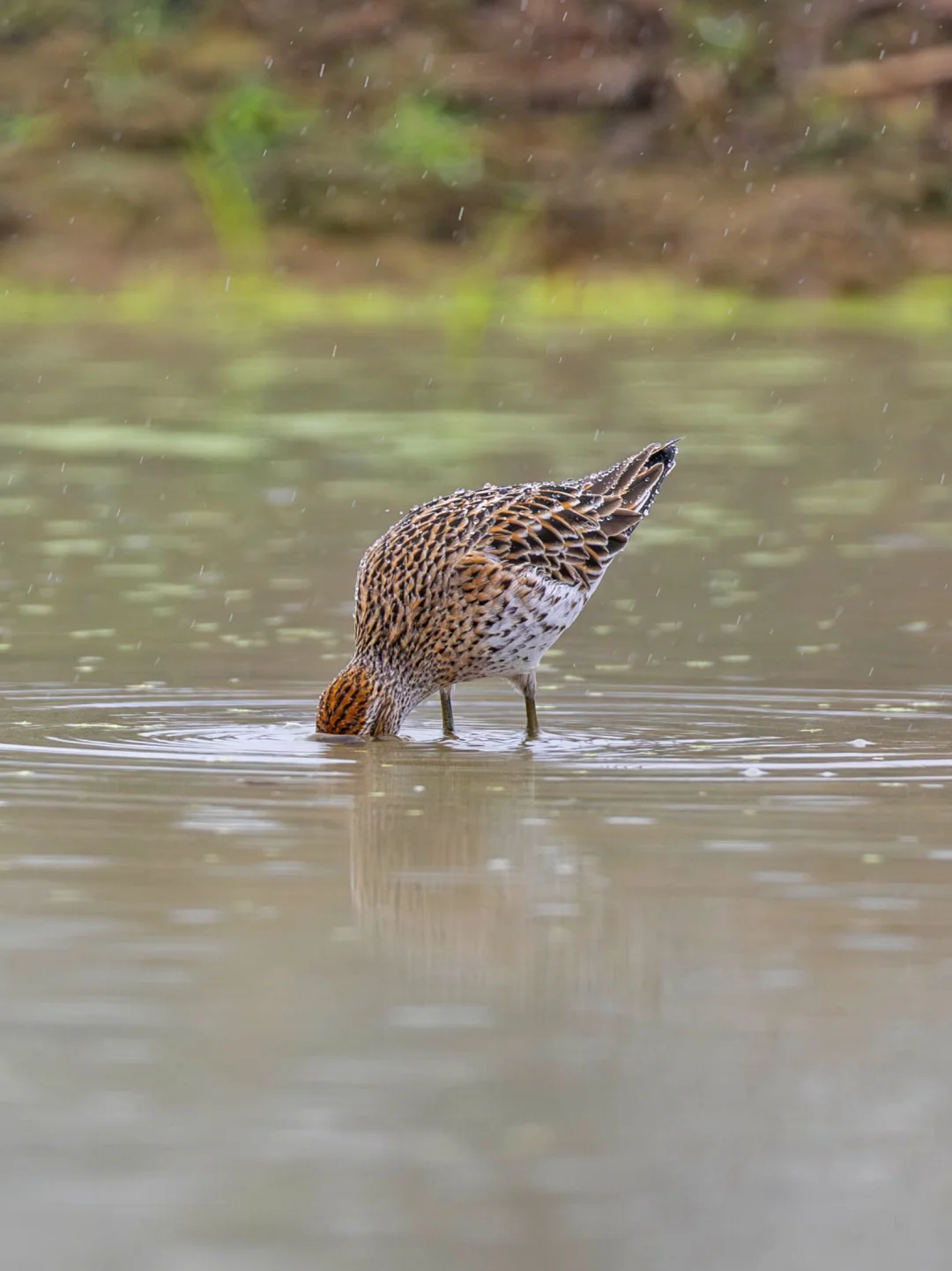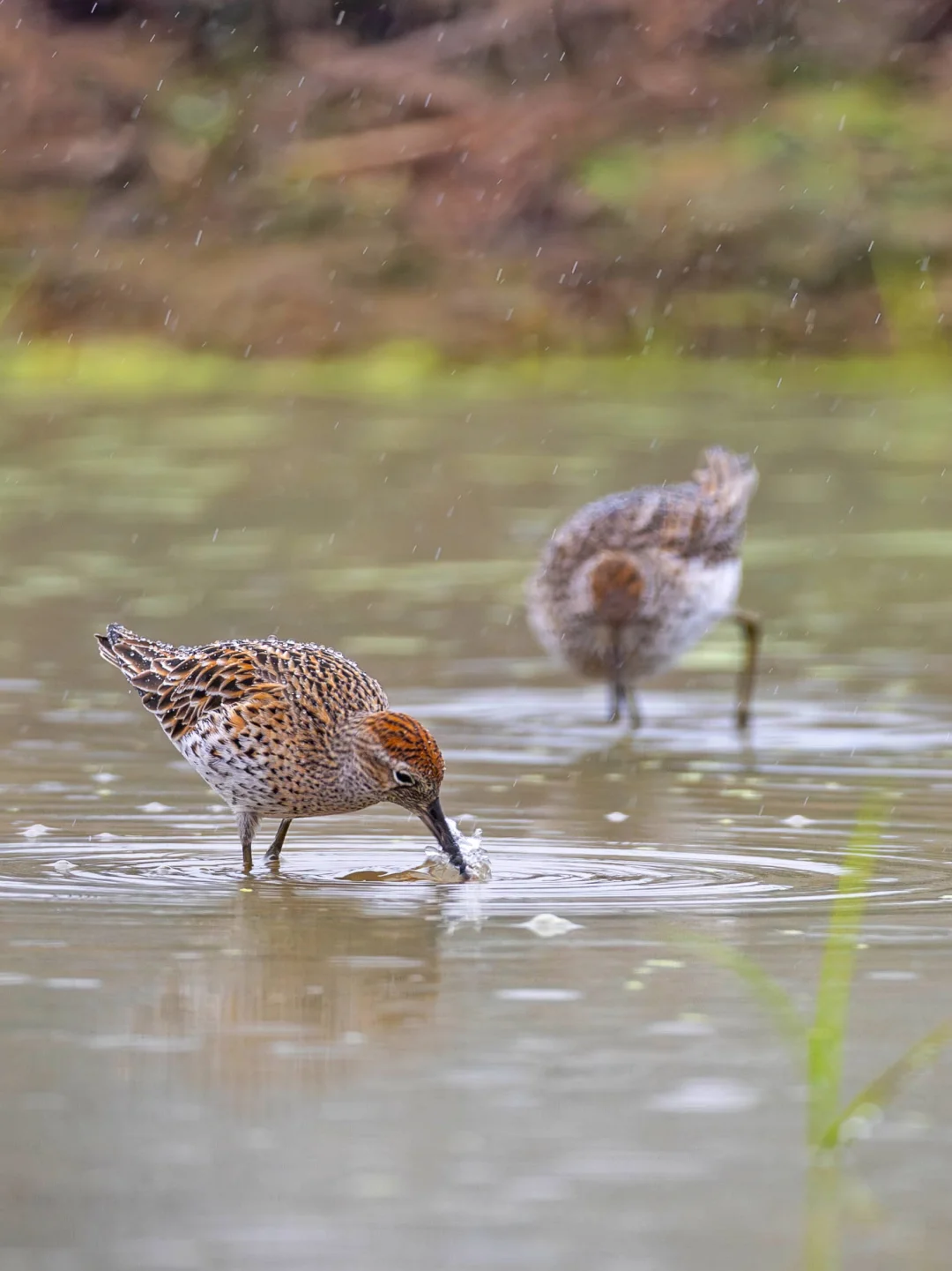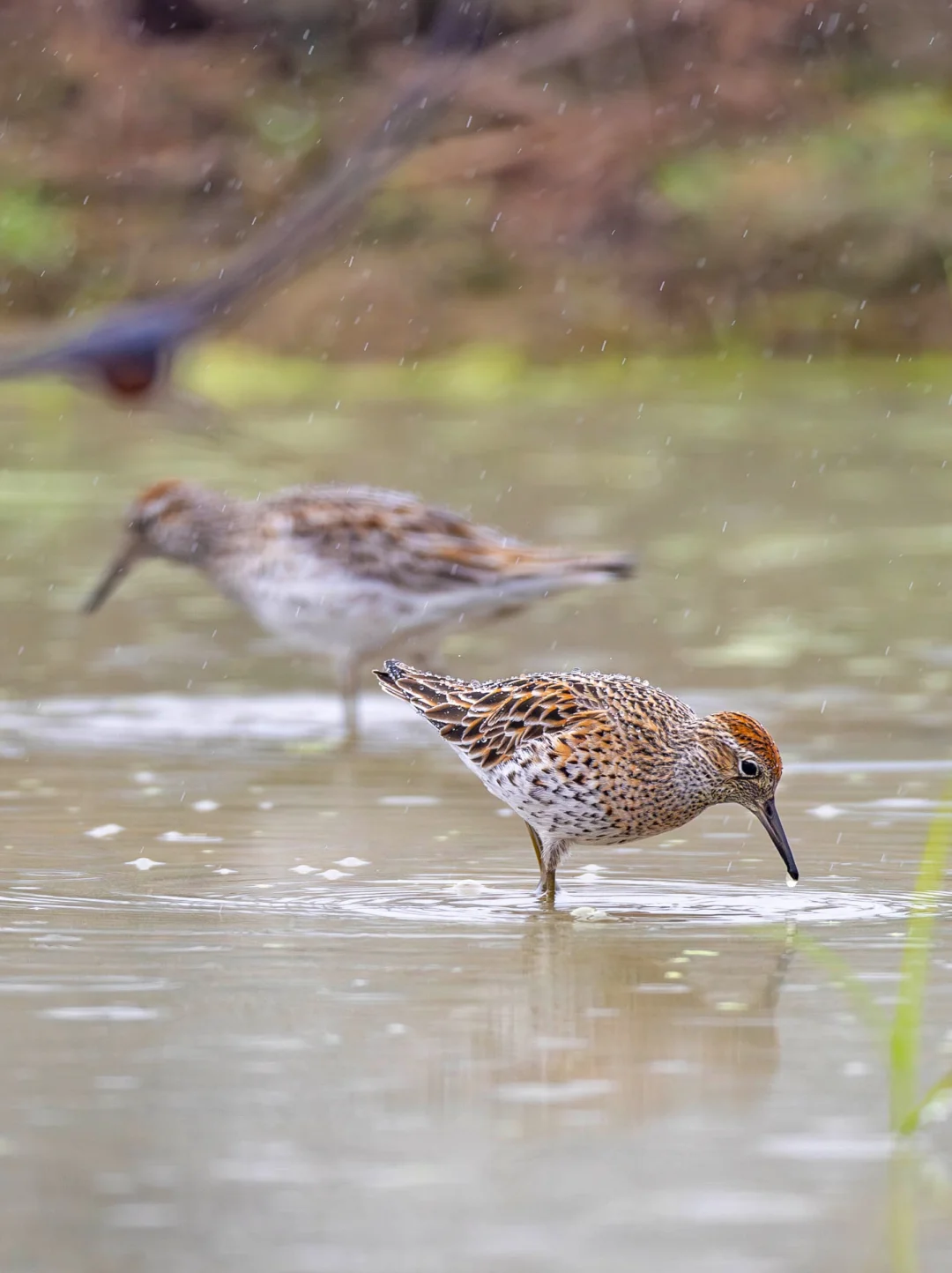 原创拍摄于2025.04 尖尾滨鹬,Sandpiper,鸻形目丘鹬科滨鹬属。尖尾滨鹬在我国大多是迁徙过境的,它们喜欢和其他鸻鹬类混在一起。目前已经是易危物种了。 尖尾滨鹬繁殖羽有一顶醒目的栗色帽子,同时带着浅色眉纹和黄色胸部,胸腹部斑纹都很多。 时节雨纷纷,一点也不影响这对迁徙路过深圳的尖尾滨鹬辛苦干饭啊,迁徙看来不容易。