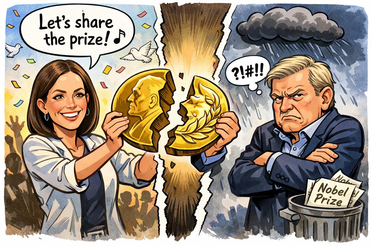 委内瑞拉反对派领导人玛丽亚·科里纳·马查多在1月6日接受福克斯新闻采访时说:她很想和特朗普“分享”自己2025年拿到的诺贝尔和平奖,还要当面感谢他,因为这次军事行动是“巨大胜利”。她把1月3日那天称为“正义胜利的日子”,还强调这个奖其实属于全体委内瑞拉人民。 但事情有点尴尬,特朗普其实对马查多得奖很不爽,他觉得这个奖应该给他才对。据报道,他私下抱怨马查多没把奖让给他,还公开说她“没有国家和人民的尊重”,是个“善良但没影响力”的女人,根本不支持她当新总统。 诺贝尔和平奖本来是崇高的象征,结果在这里变成了可以“分享”的筹码,被当成交易工具,和平二字的意义被彻底掏空了。