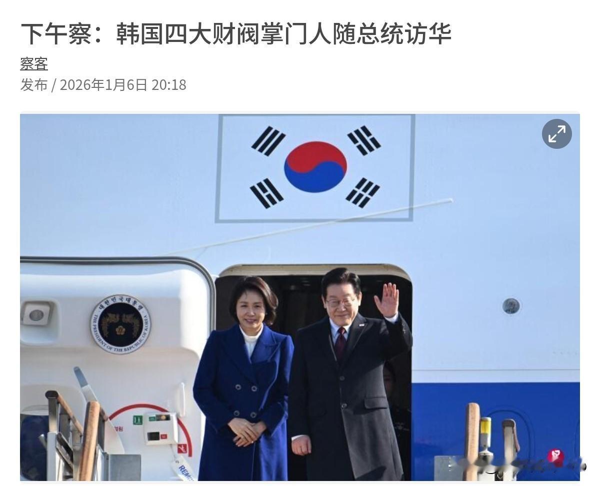 还是外媒看的敏锐!外媒表示,这一次李在明访华行程格外特殊,对于韩国而言,韩国是把所有的牌都拿出来了,韩国正希望布局中国赢得主动!1月6日,联合早报刊文表示,韩国总统李在明高调访华,一个细节却引起外界高度关注:那就是多名韩国重量级企业掌门人,与李在明同行。这其中,韩国四大财阀掌门人最受瞩目。 外媒表示,时任韩国总统文在寅2019年12月访华时也曾携带过经贸代表团,当时的规模约为100人左右,但这一次李在明率200多人前来,且四大财阀掌门人均前来,可见韩国访华规格之高。外媒表示,韩国这样的举动,这可以被理解为中美博弈下,韩国一场务实而审慎的经济外交布局,韩国是把能拿得出手的牌都带上了。 对于韩国这个高度依赖出口的国家而言,中国市场非常重要。事实上,中国市场不仅重要,而且中国还是韩国企业生产,研发,供应链非常重要的一环。外媒表示,虽然韩国企业面临中国产业的激烈竞争,但是如果韩国想要在比如Ai,6G、动力电池等新兴产业中占据一席之地,韩国必须压注中国市场,而这不仅仅是对冲中美博弈的风险,而是韩国不得不进行的务实选择。 不得不说,外媒看的非常的透彻。抛开政治层面不谈,从中国的视角来看,我们国内无疑处于产业全面升级的爆发期,中国产业竞争力越来越强,正在全面向高端制造迈进。当下,韩国企业正面临我们非常激烈的竞争,但是面对这种竞争,如果韩国企业能够通过投资中国,嵌入中国的供应链,整合中国的供应链,发挥自身优势,那韩国企业也会拥有越来越强的竞争力。 而如果韩国不逆流而上,成为中国产业升级的重要参与者,那韩国企业极有可能成为淘汰者,而失去竞争优势。很显然,李在明的这一次访华,对于韩国企业而言是一个非常重要的机遇窗口期,不抓住这个机遇,那就是不进则退的局面。显然,韩国很清楚这一点。事情是摆明着的,韩国相对于我们有优势的产业已经不多了,韩国更要在中国这个激烈的市场参与竞争。不管结果如何,从战略上来说,韩国做了正确的选择。
