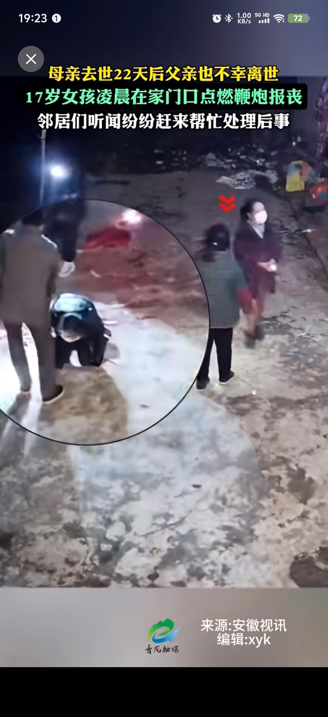 《善意回归》 深夜的鞭炮声 穿透了,大江南北 姑娘 磕在地上的 那一个个头 我看见 这是传统的回旋镖 带着人间本来的温度 刺透了冷眼与麻木, 重新回归 我们 还有救 我们 正在被唤醒 我们 需要去救人 父母一个月内相继离世女孩独自报丧