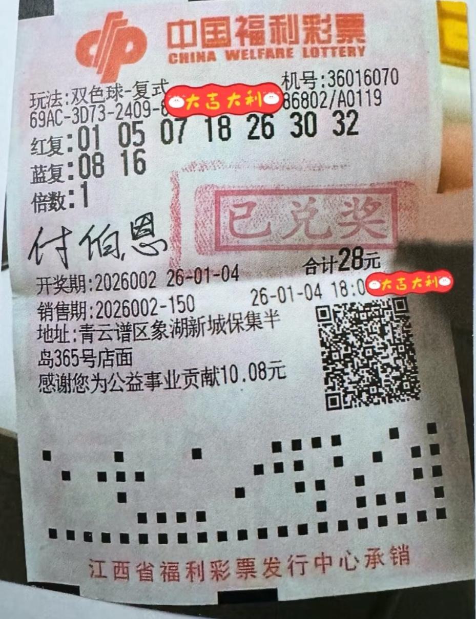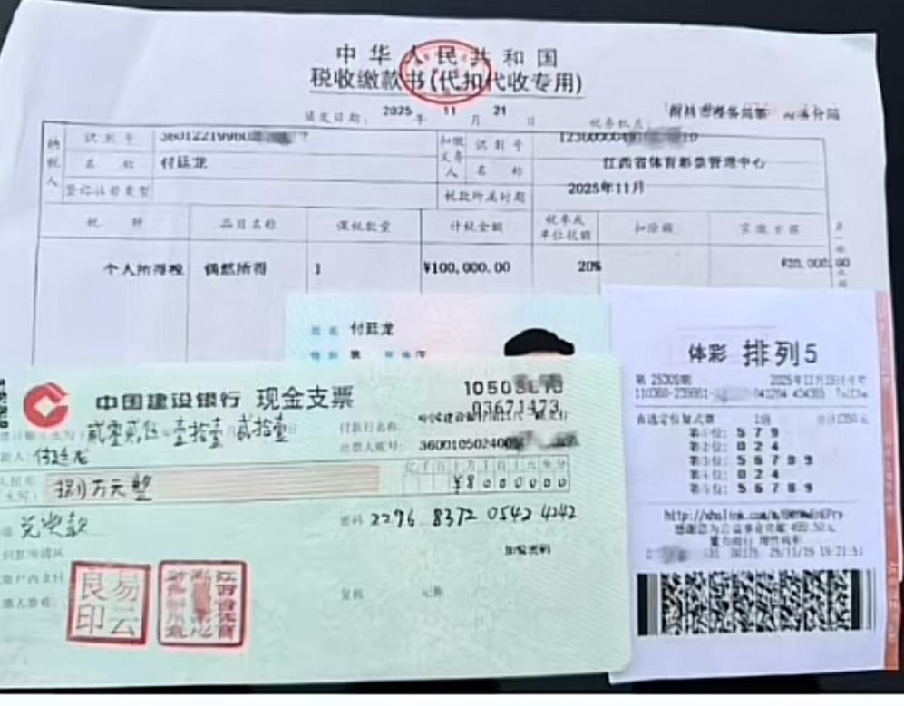 “天选之子”竟真有现实版!来自江西的付伯恩,堪称彩票界的传奇——短短两年半时间,他竟八度摘得大奖,其中一等奖2次、二等奖6次。最近一次中奖正是双色球第26002期,再度延续其“中奖神话”。 今日就来盘点这位幸运儿的“战绩”,一探他累计揽获的奖金总额: 大乐透23079期一等奖:1009.6万元 大乐透24014期二等奖:23.4万元 大乐透24134期二等奖:7.6万元 大乐透25095期二等奖:13.6万元 双色球25041期二等奖:53.1万元 双色球25054期二等奖:16.3万元 双色球26002期二等奖:45.5万元 排列五25309期一等奖:10万元 累计奖金高达 1179.1万元,税后实得 943万元。 如此连番好运,真是令人既惊叹又艳羡!