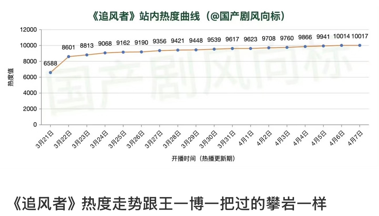 王一博 追风者143轮上星轮播啦~142轮:揭阳电视台综合频道自2026年01月08日起晚间档每日两集播出;143轮:揭阳电视台综合频道自2026年01月09日起上午档每日两集播出)追风者的热度走势也稳步上升,而且cvb拉升率也很高,全方面无短板的好剧,平台唯一破万谍战剧。