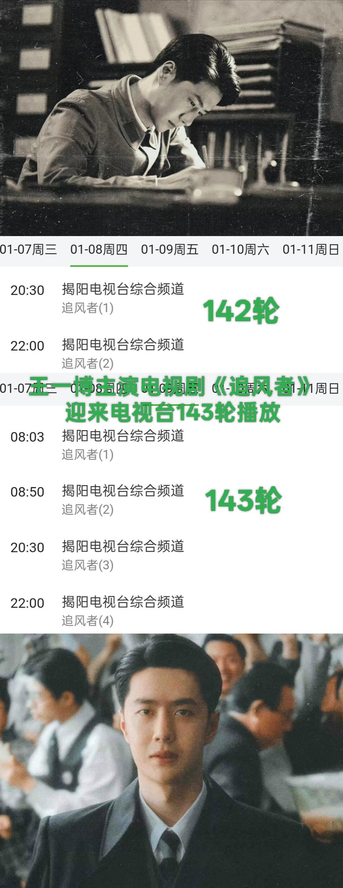 王一博追风者143轮上星轮播啦~142轮:揭阳电视台综合频道自2026年01