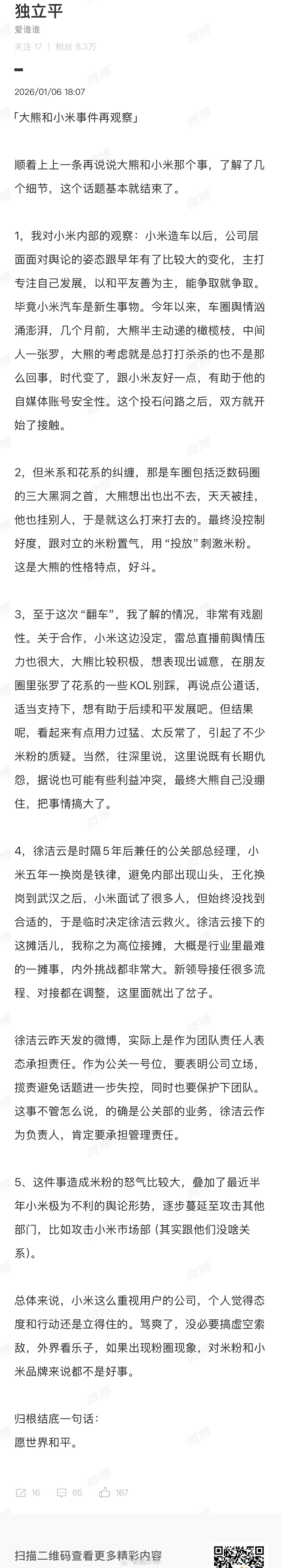 居然是那边主动联系的么?联系的节点还正好卡住了小米公关调整的关口,结果整这么一出,可怜市场部这边啥事儿没做就成了背锅的……事情厘清之后,大家就放他们一马吧哎,话说回来,还是希望这件事可以顺利翻篇,米粉是小米的基石,不会有人真的吃饭砸锅的。大家后续看小米的表现吧,应有的愤怒不要成了某些人的枪,这对米粉和小米来说都是损失,哎