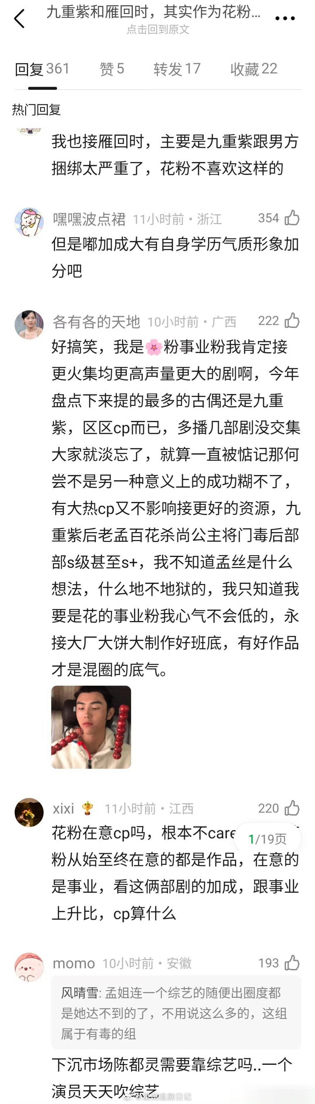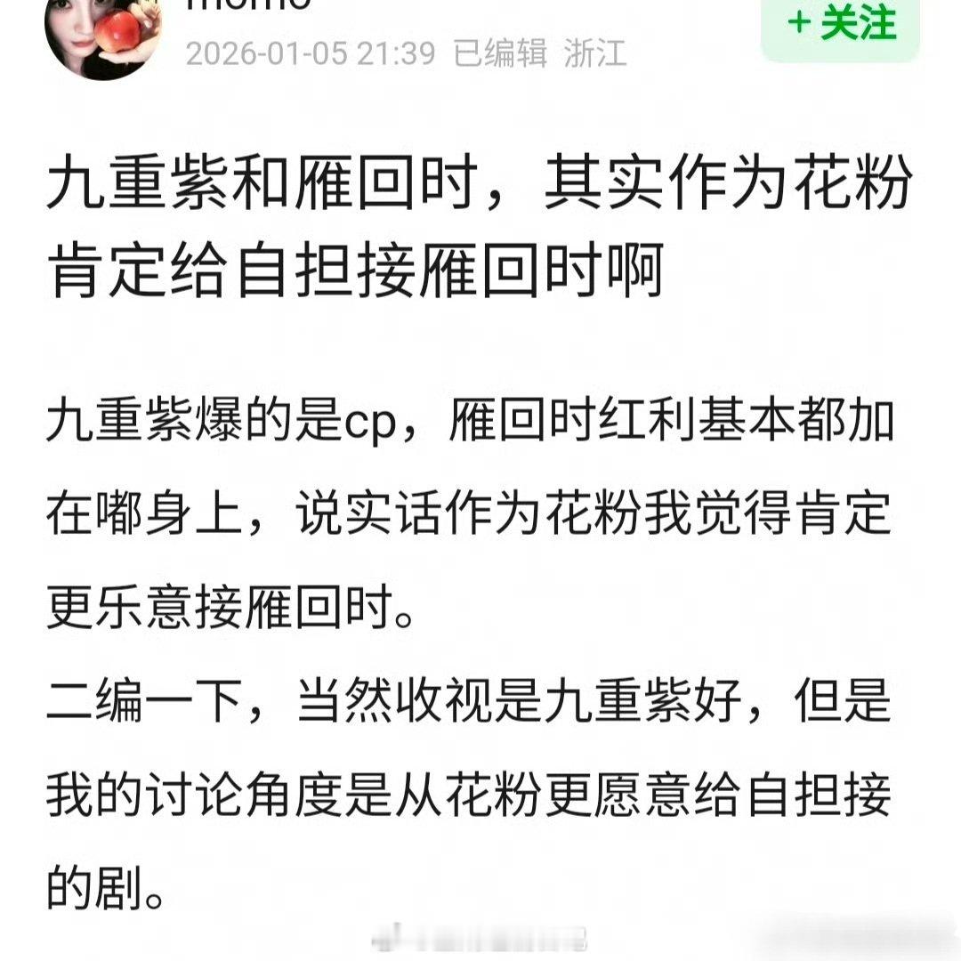 老实说,🌸花粉接孟子义《九重紫》还是陈都灵《雁回时》? 我觉得应该是雁回时那类的吧~红利女主通吃的那种。主要是后续还捆绑cp这点可太灾难了。确切的说,就是花粉更喜欢大家都爱我姐姐,但是我姐独美那种吧…除女主外的话,其他人选《九重紫》这样都能上桌。做到底考量不一样