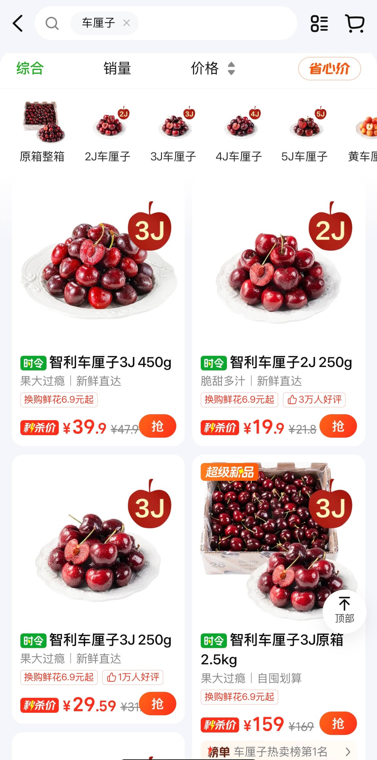 车厘子暴跌第一批受害者出现车厘子好像确实更便宜了,刚搜了下3J的5斤价格159元!前几天看貌似还180呢好了,全款拿下一箱!