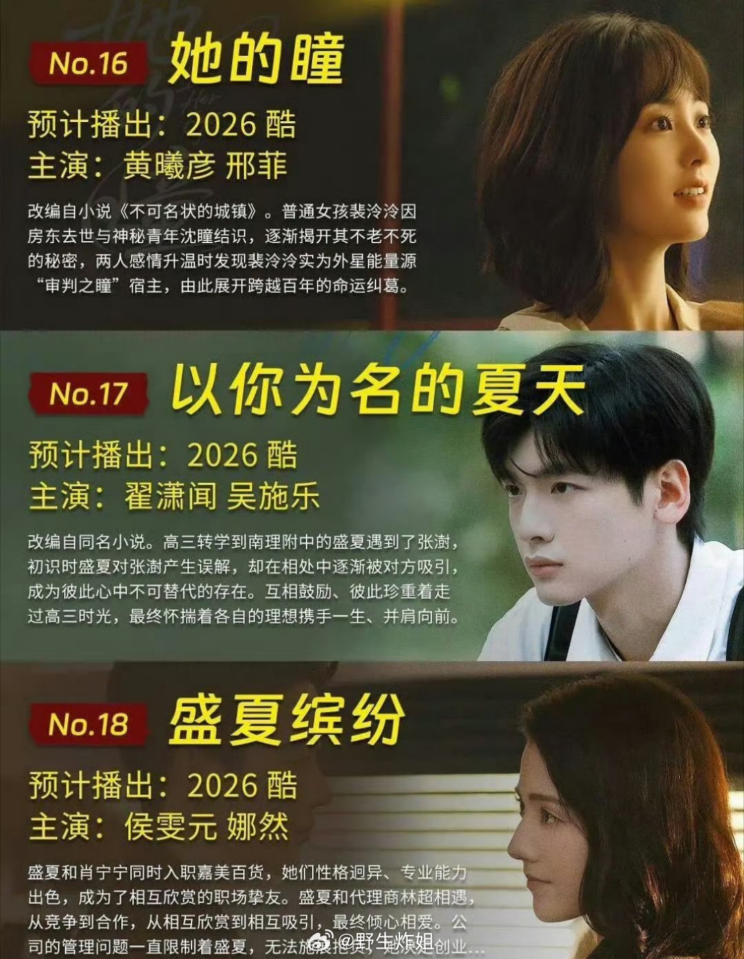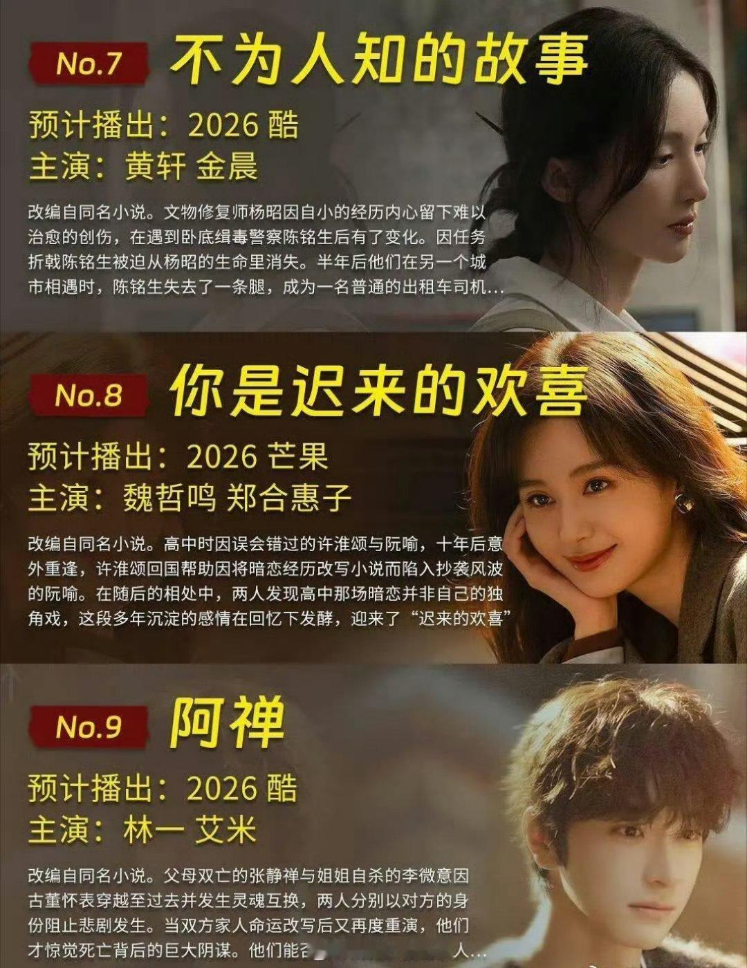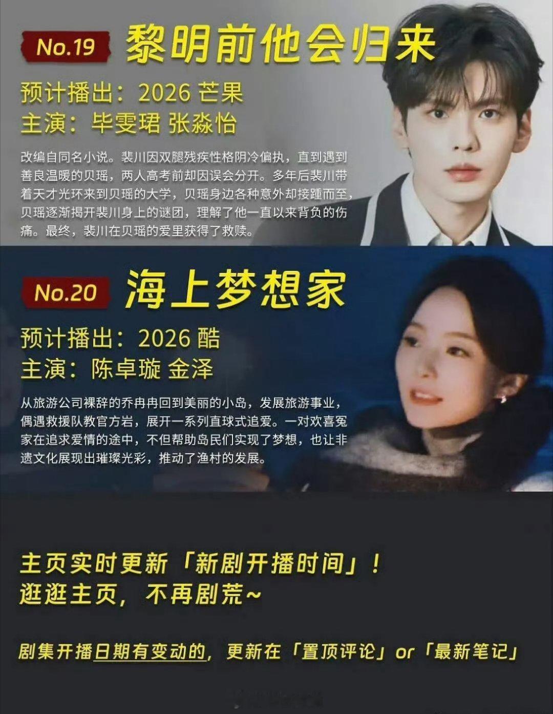 暂定会在2026年正式播出的现偶汇总,一共有20部剧,要是都在今年一股脑放出来,你最看好哪一部剧能成为年度爆剧呢?