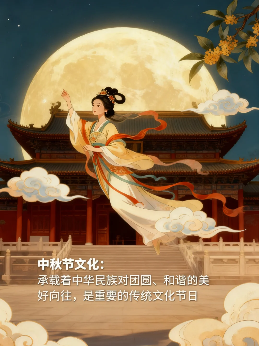 2. 嫦娥奔月:最经典的传说!后羿射日获不死药,嫦娥误食飞上月宫,后羿思念她,在中秋摆月饼水果遥祭,这习俗就传了下来。