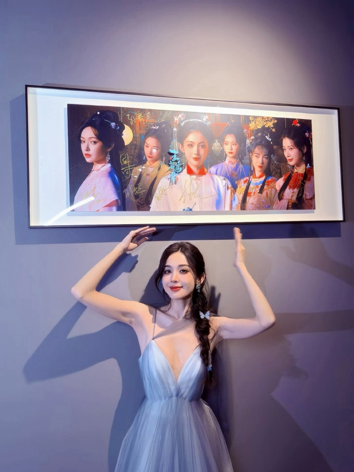 娜扎玉茗茶骨挂画合照娜扎与玉茗茶骨挂画同框的这张合照,简直是古典雅致与现代明艳的完美交融。她眉眼如画,肤白胜雪,一袭穿搭或温婉或清丽,与挂画里玉茗的雅致、茶骨的清隽相映成趣,眉眼间的温柔笑意更是添了几分古韵悠然,仿佛从江南水墨画卷中走出来的佳人,一颦一笑都透着沁人心脾的雅致,美得清新又高级,氛围感直接拉满。