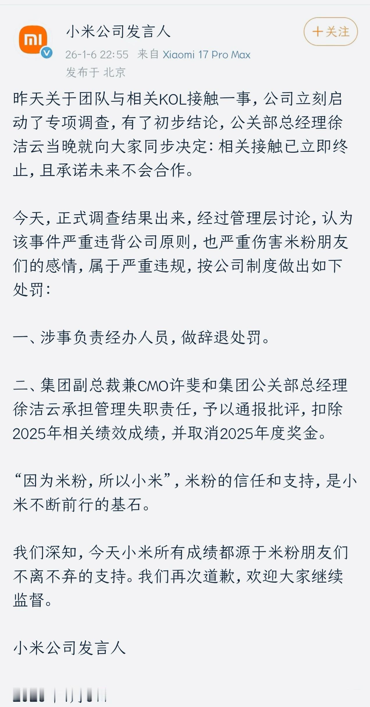 这事动静这么大吗。 想起五六年蔚来的公关总监因为类似事情的被迫辞职。 也再次给以后人提了个醒,这种“世纪大和解”要慎重。 小米今年新车发布会的时候,雷总要不就别讲全场了,给其他负责人一个舞台。如此舆情下,他以退为进可能更好。