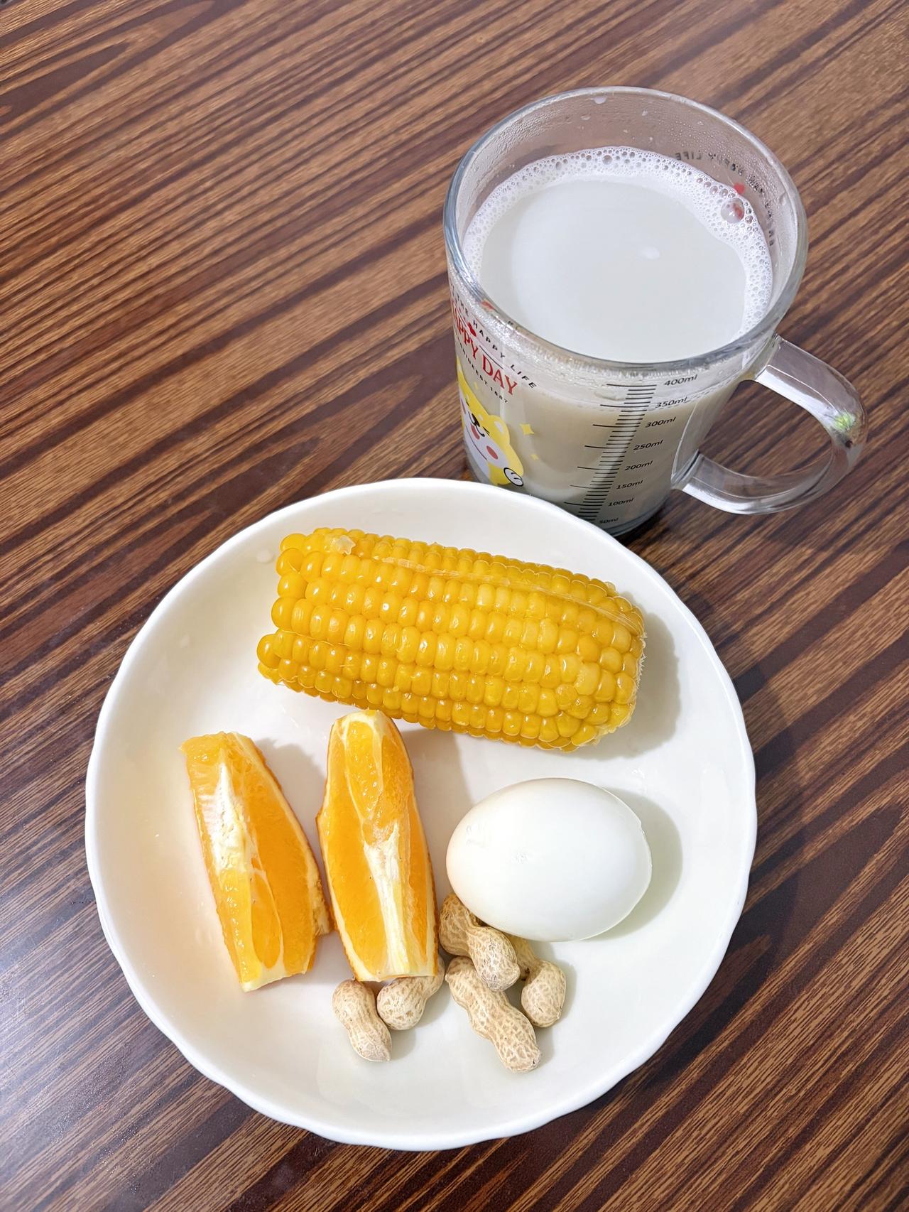 泪水打湿我的减脂餐,目标103斤,加油 今日减脂早餐:玉米+鸡蛋+花生+橘子+豆