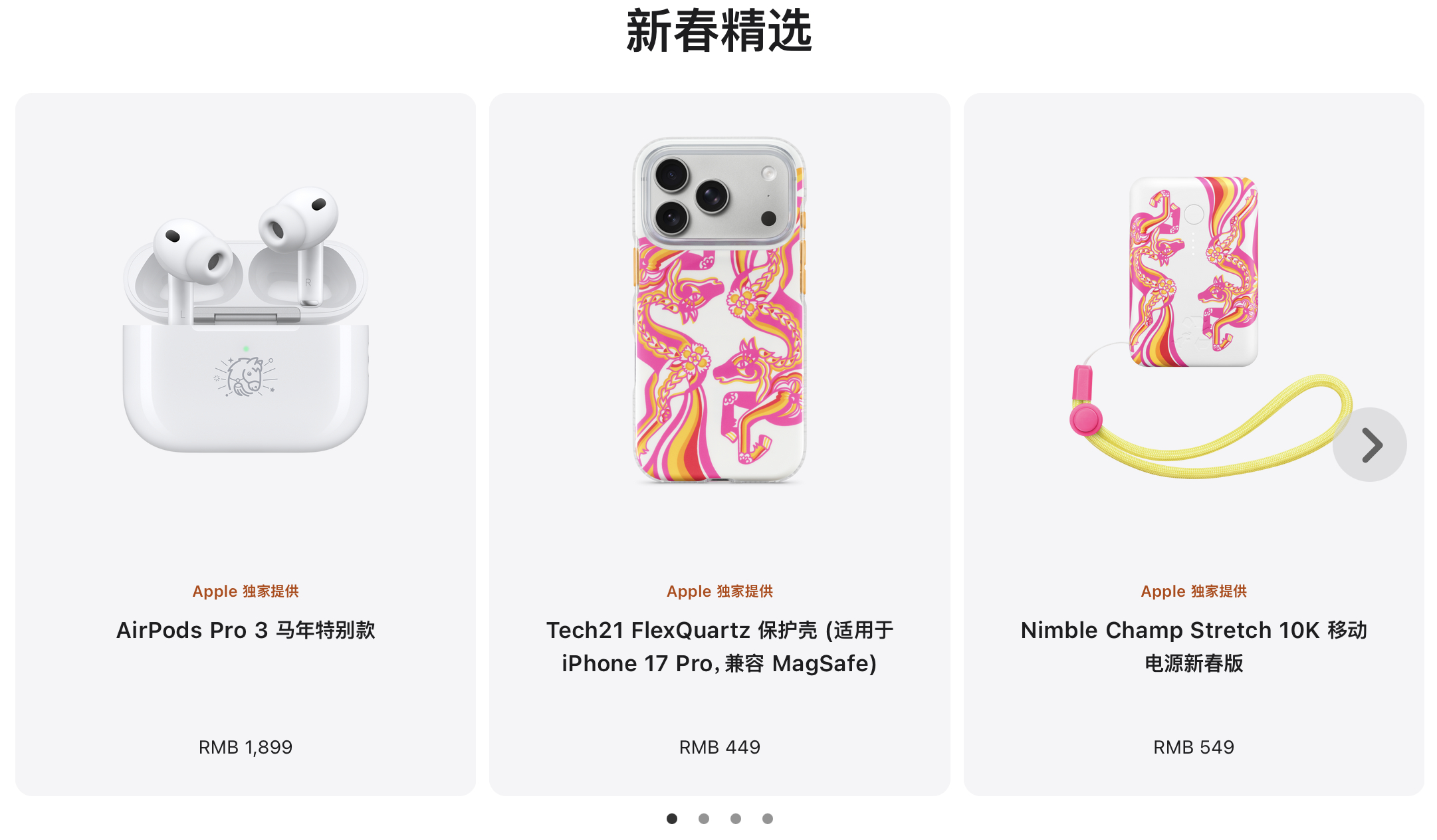 除了马年特别版 AirPods Pro 3,苹果还上新了一套马年主题配件。包括 iPhone 保护壳、AirPods Pro 3 保护壳、AirTag 保护壳等等这款马年手机壳由知名艺术家陈粉丸联袂设计,以马为设计灵感融合了传统的剪纸元素,适配iPhone 17系列和iPhone Air,并且兼容MagSafe,售价 449。大家觉得这款手机壳设计怎么样?苹果马年手机壳449元