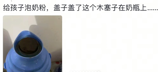 给孩子泡奶粉,盖子盖了这个木塞子在奶瓶上......