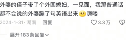 外婆的侄子带了个外国媳妇,一见面,我那普通话都不会说的外婆蹦了句英语出来嗨喽