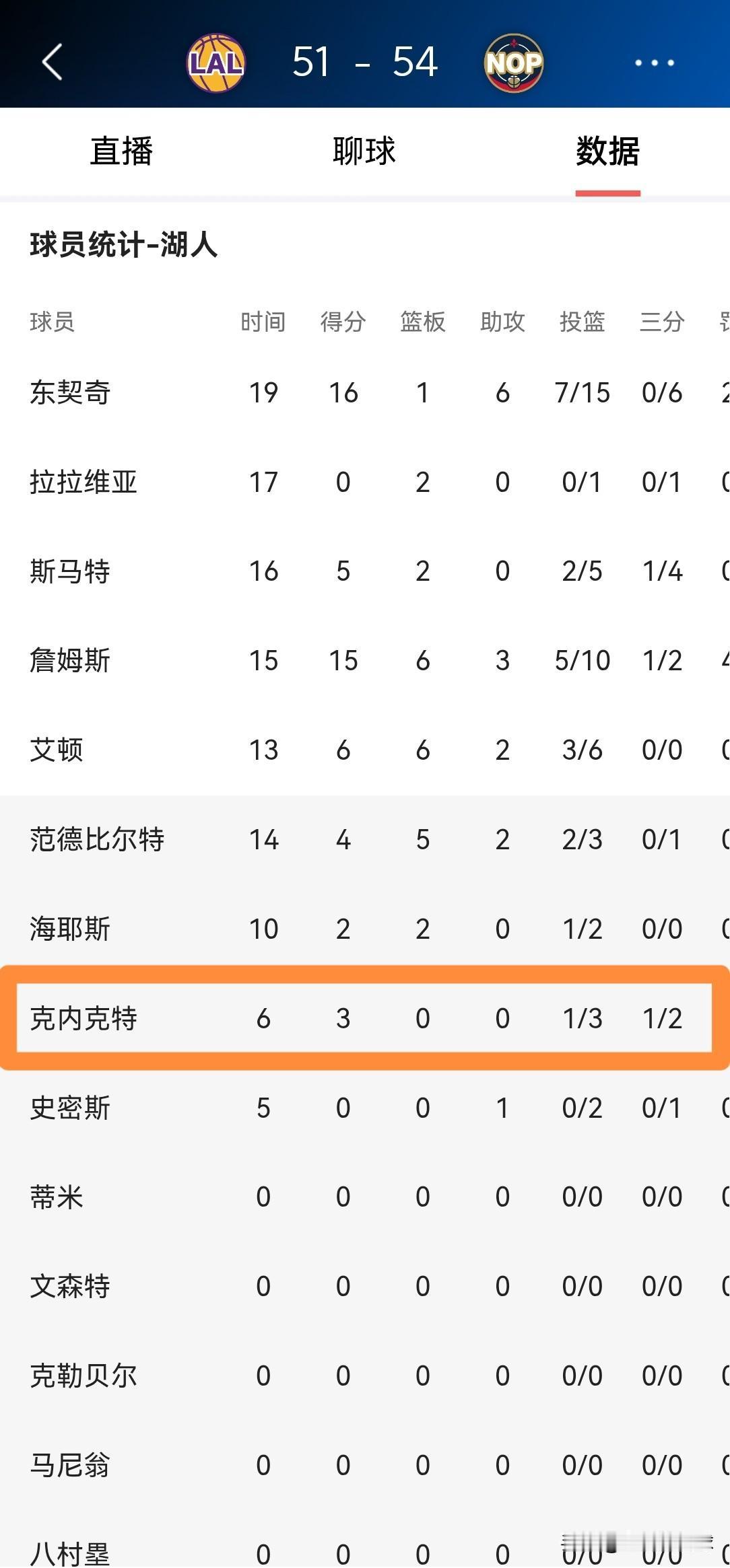 我对湖人新星克内克特真是无法容忍了!在今天湖人客场挑战鹈鹕的上半场比赛中,克内克
