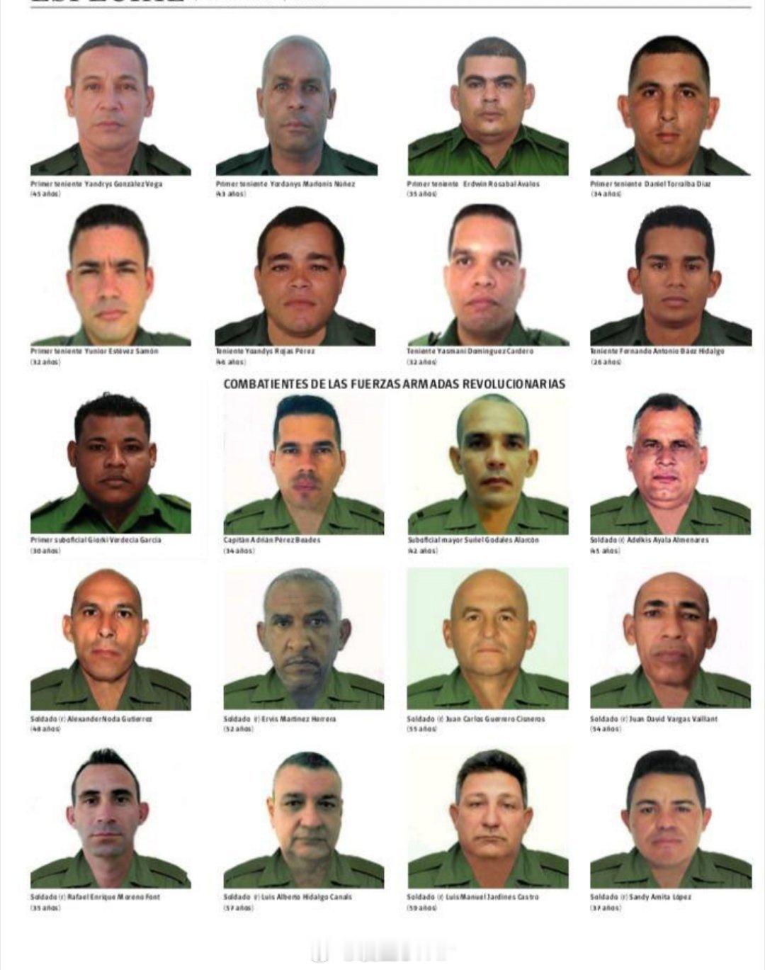 古巴公布32名在委内瑞拉阵亡军人姓名照片 古巴公布了在美军突袭委内瑞拉抓捕马杜罗的行动中,阵亡的32名古巴士兵的姓名和照片。