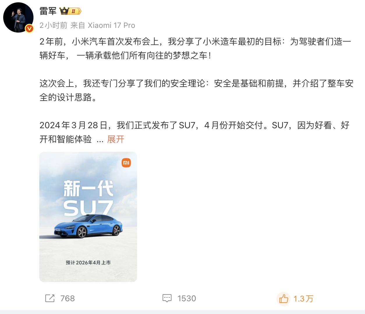 雷总估计也是头疼啊!在小米SU7新款官宣的这节点上遇上这档子事,这次和KOL万能的大熊合作事件,难怪处理这么严肃,直接把相关责任人开除了,公关部经理年终奖也没了[笑哭]这波处理可谓雷厉风行。 然后紧接着第二天就官宣新一代SU7,真是在风口浪尖上啊!这2件事加一起,这两条讨论小米的热度真是空前啊!