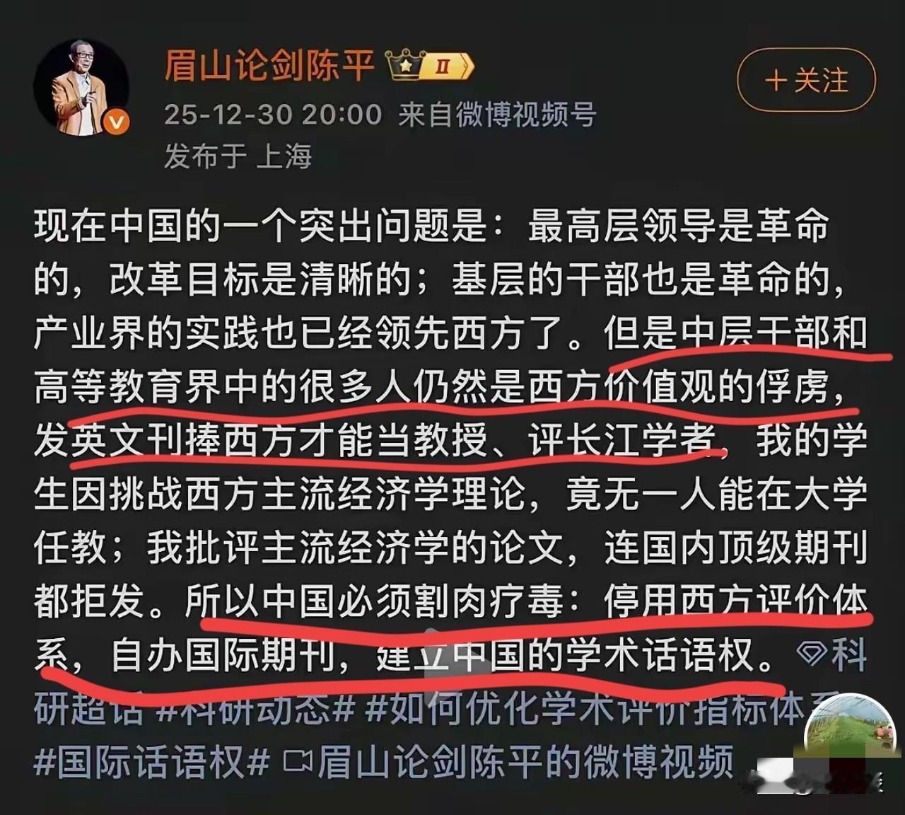 西方的文科并不是世界的明天,也许世界的明天和希望在东方。而在大学里,却有不少老师仍然以西方为模板,凡事必称西方某某著名经济学家说,一切以西方为衡量的标准。经过几十年的发展,西方的经济理论已经难以适应社会的发展,甚至被发现存在不少的问题。然而,深受西方社会思潮影响的学者,教授仍然把西方的观点,当成自己学问做的好与坏的标准。我们的学术虽然应该跟世界接轨,但是不能以西方观点来寒凉。我们科研做的好与坏的标准,特别是文科项目,毕竟各国有各国的国情,每个国家民族都有他自己的特色。
