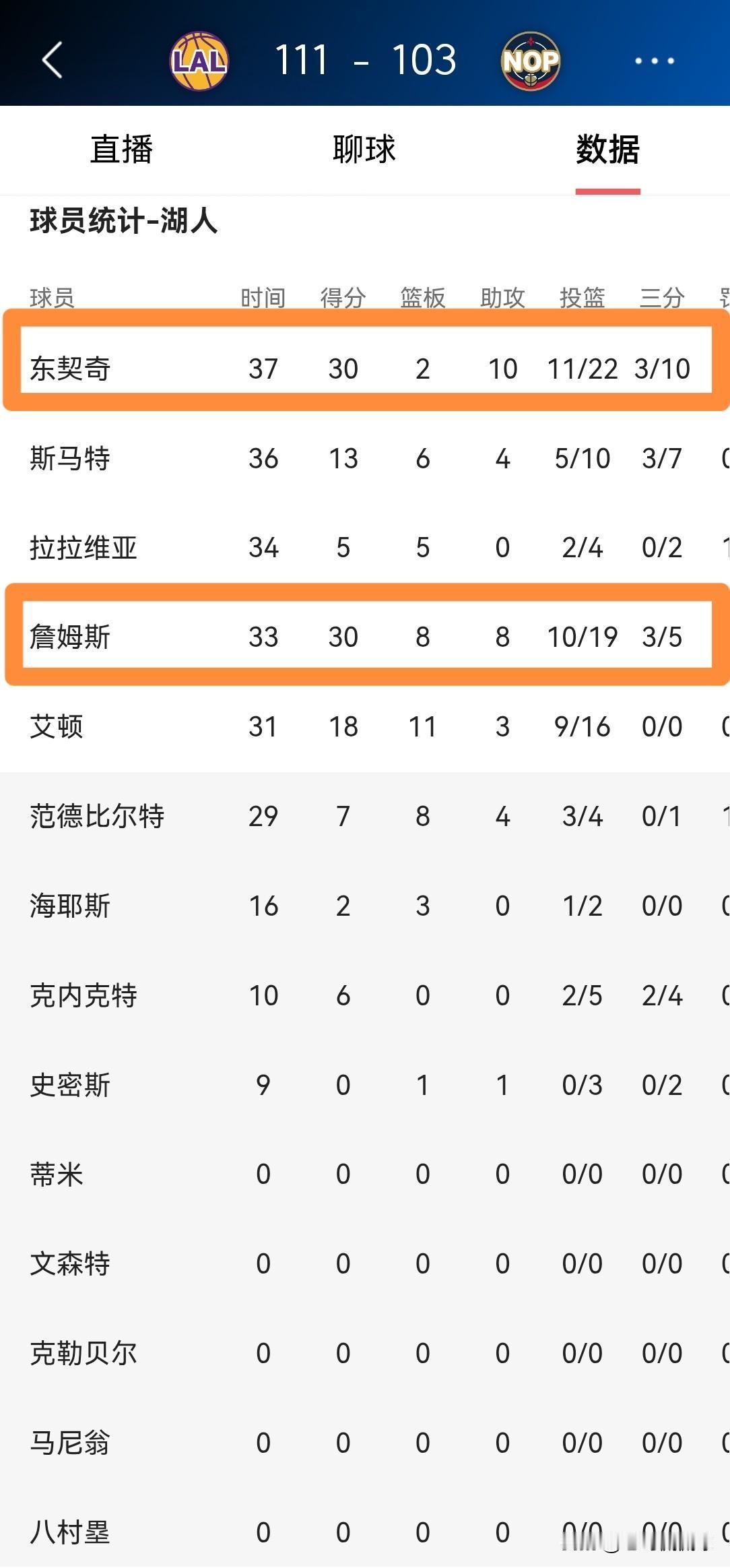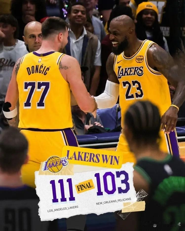 湖人官方真是太懂人情世故了!今天湖人在客场以111:103击败鹈鹕,本场比赛湖人双星詹姆斯和东契奇双双砍下30分,他们合砍60分10篮板18助攻,是球队能够获胜的大功臣。值得注意的是,在比赛结束以后,湖人官方在社媒上晒出了一张赢球海报,结果詹姆斯和东契奇携手登上了赢球海报。 说实话,湖人官方真是太懂人情世故了,每当“满分组合”打出精彩表现时,湖人官方都会把他们当作赢球海报的封面人物。