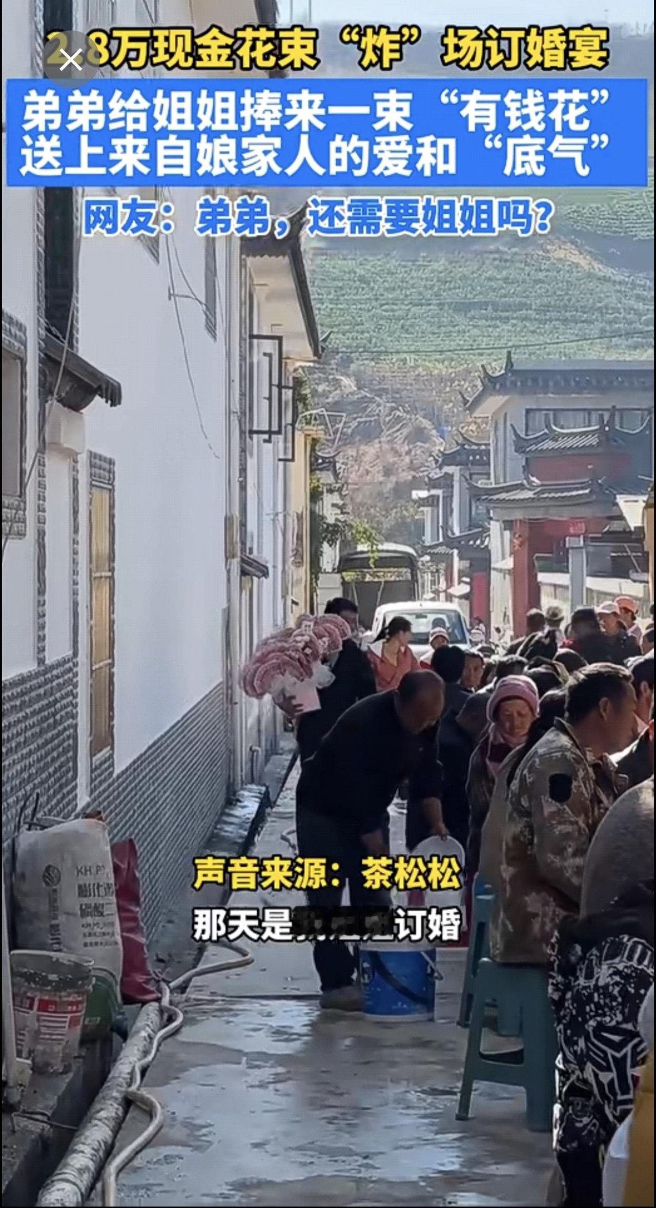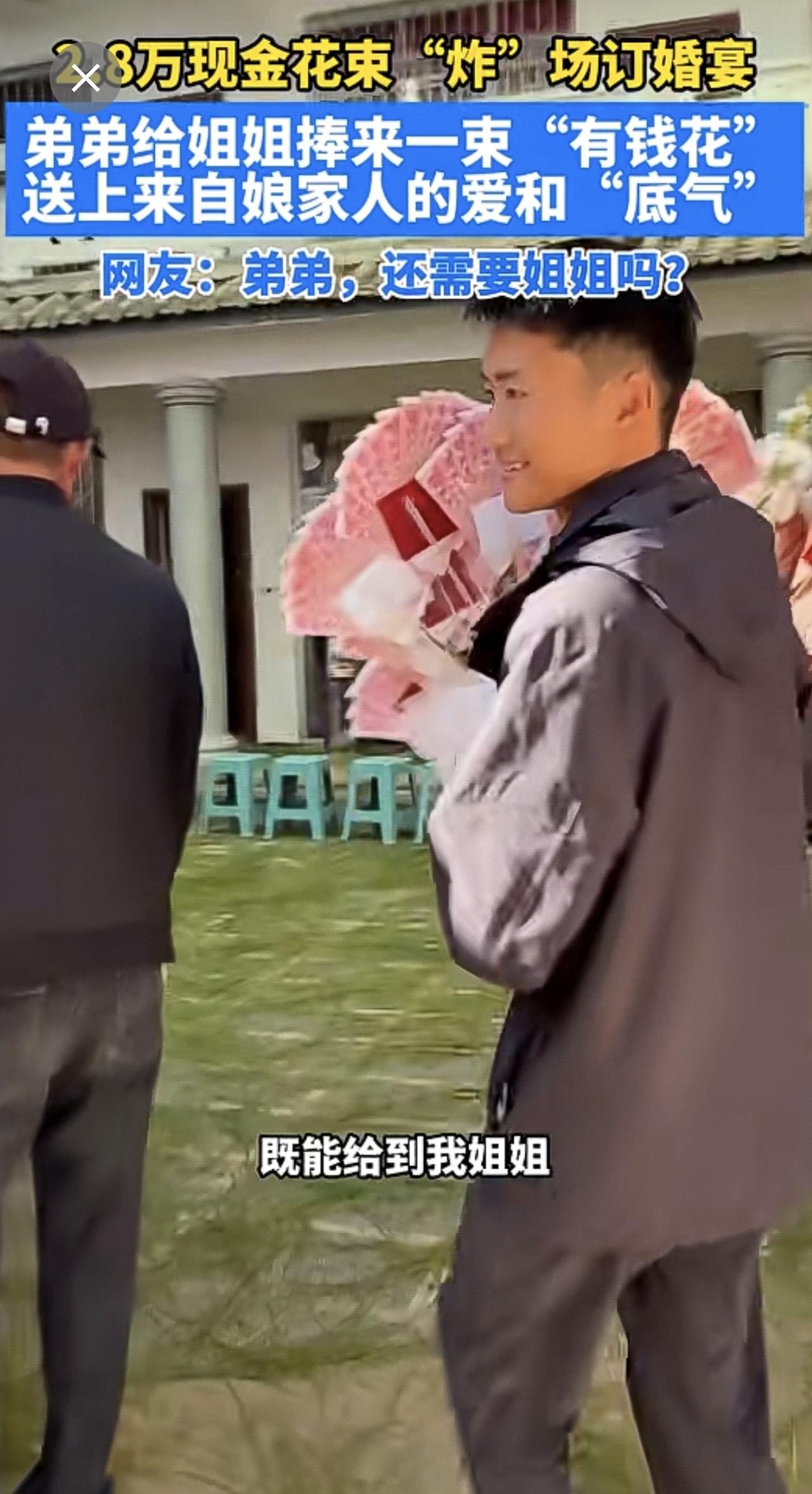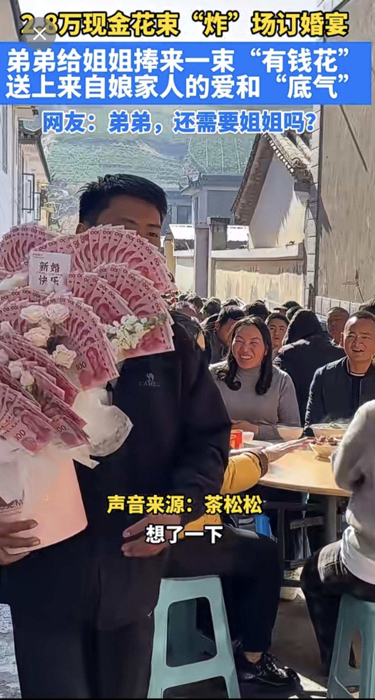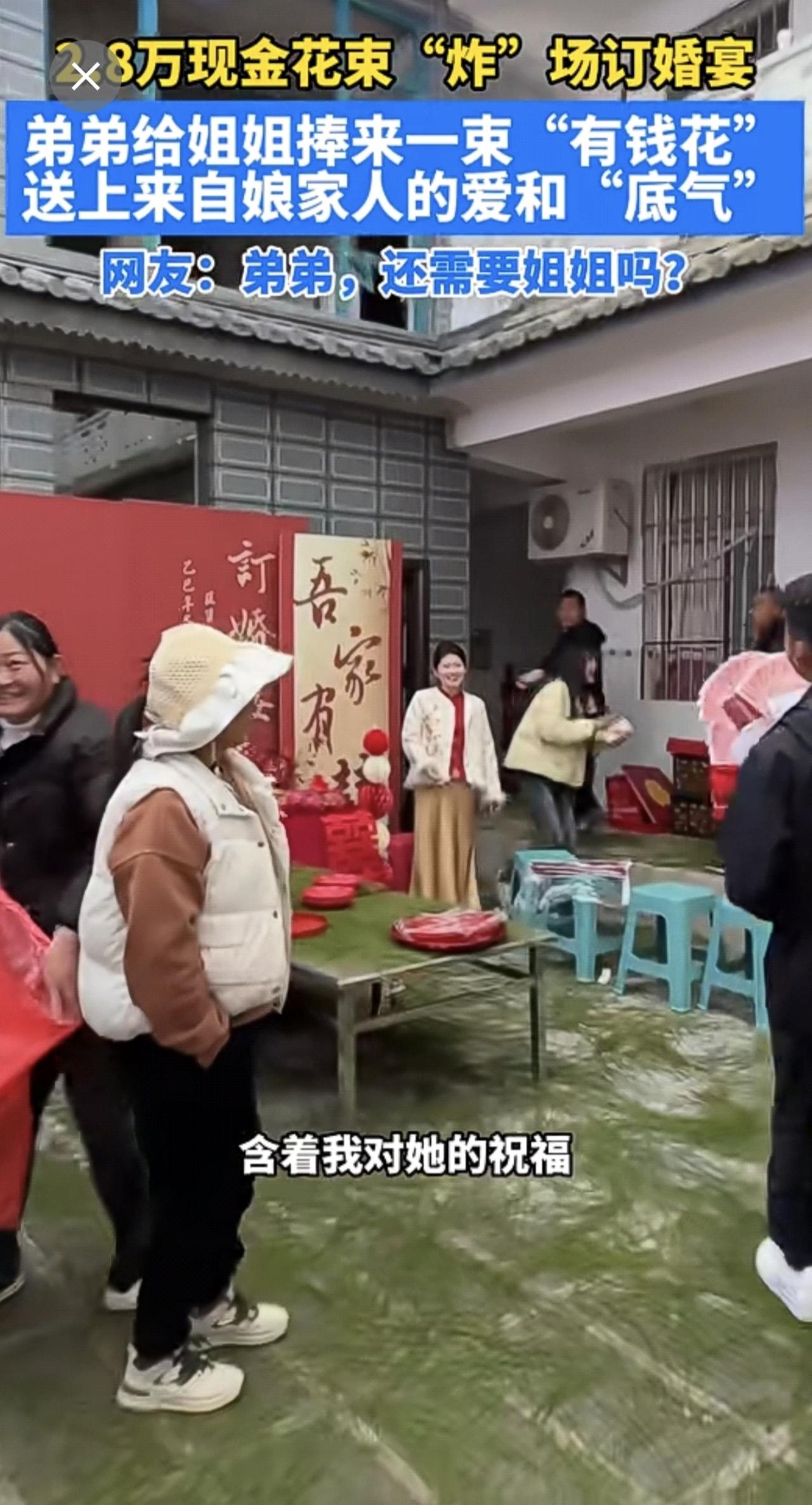 2.8万现金花束“炸”场订婚宴,弟弟给姐姐捧来一束“有钱花”,送上来自娘家人的爱和“底气”,网友:弟弟,还需要姐姐吗?订婚有钱花娘家人姐弟 (来源:松松 记者:施文哲 责编:董珍珍 审核:金飞芬 监制:赵刚 管智勇)